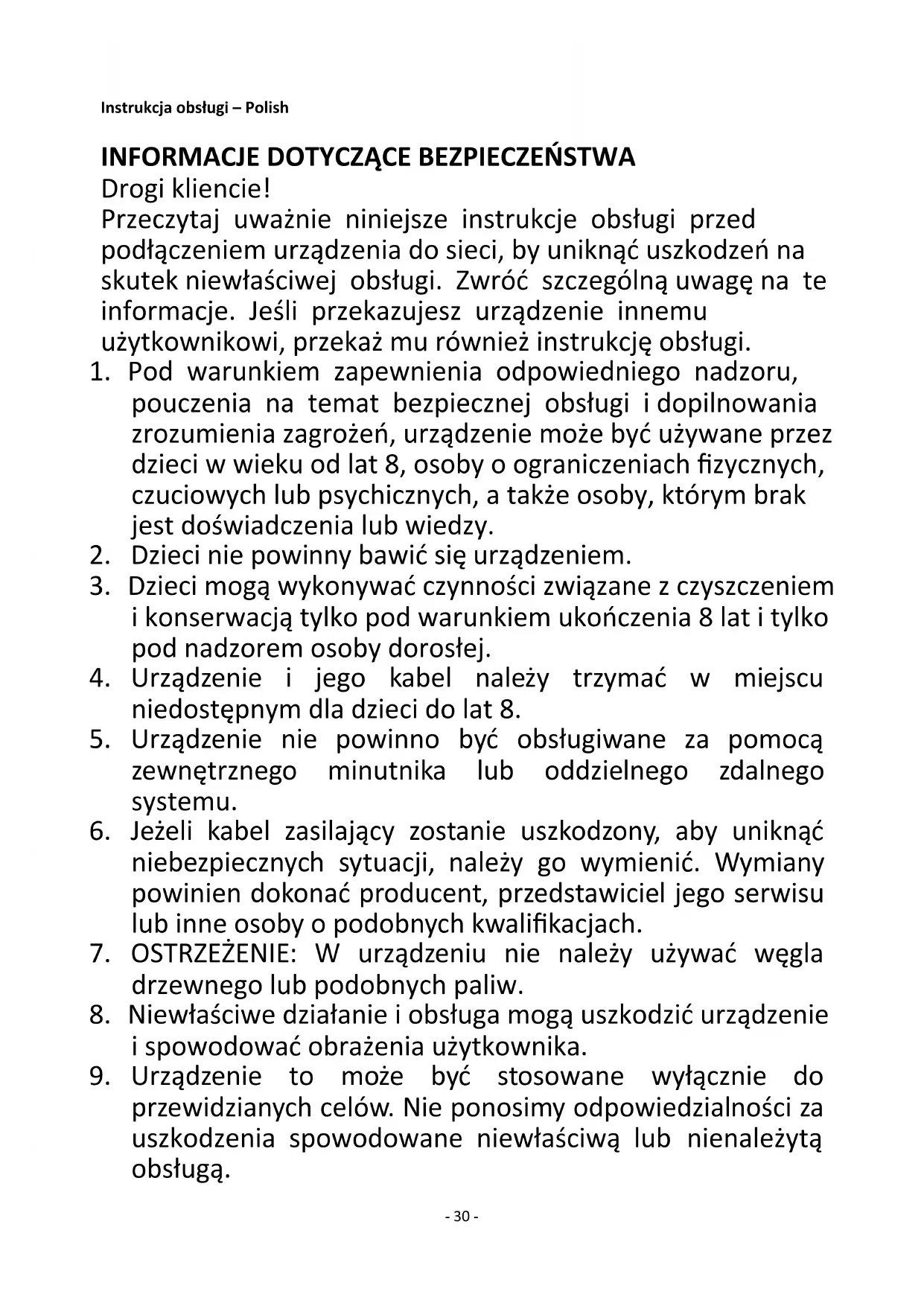 29. Nie należy przestawiać pracującego urządzenia.