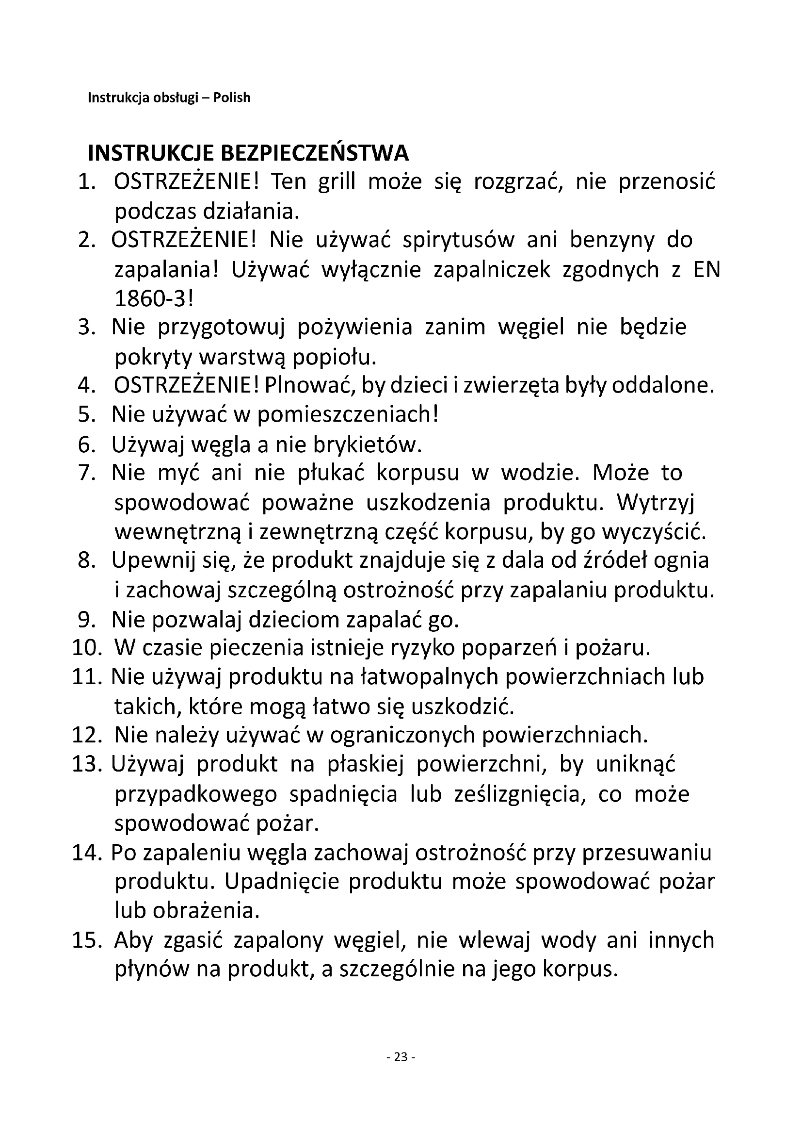 1. OSTRZEŻENIE! Ten grill może się rozgrzać, nie przenosić