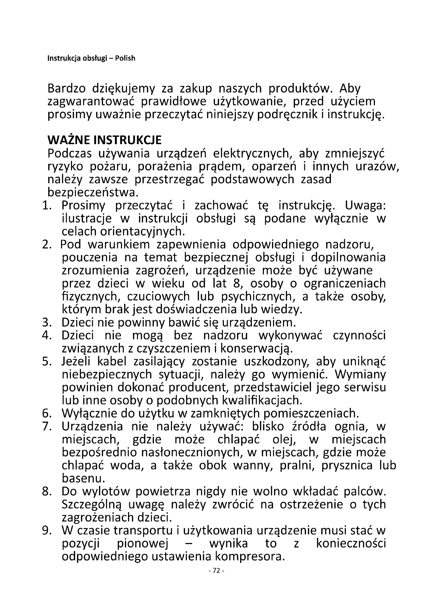 1. Prosimy przeczytać i zachować tę instrukcję. Uwaga: