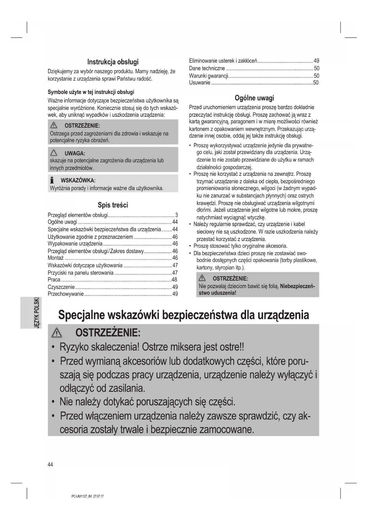 - Nie używać urządzenia z pustym dzbankiem do mieszania.46 PC-UM1127_IM 27.07.17