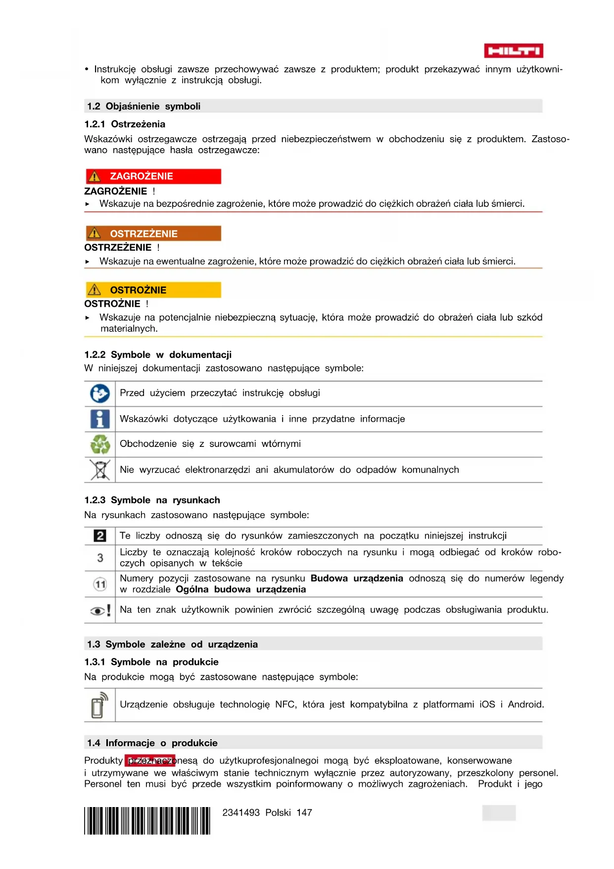 - Po zakończeniu prac konserwacyjnych założyć wszystkie mechanizmy zabezpieczające i skontrolować ich działanie. W celu bezpiecznej pracy stosować wyłącznie oryginalne części zamienne i materiały eksploatacyjne. Dopuszczone przez Hilti części zamienne, materiały eksploatacyjne i wyposażenie urządzenia są dostępne w lokalnym centrum Hilti Store oraz na: www.hilti.group