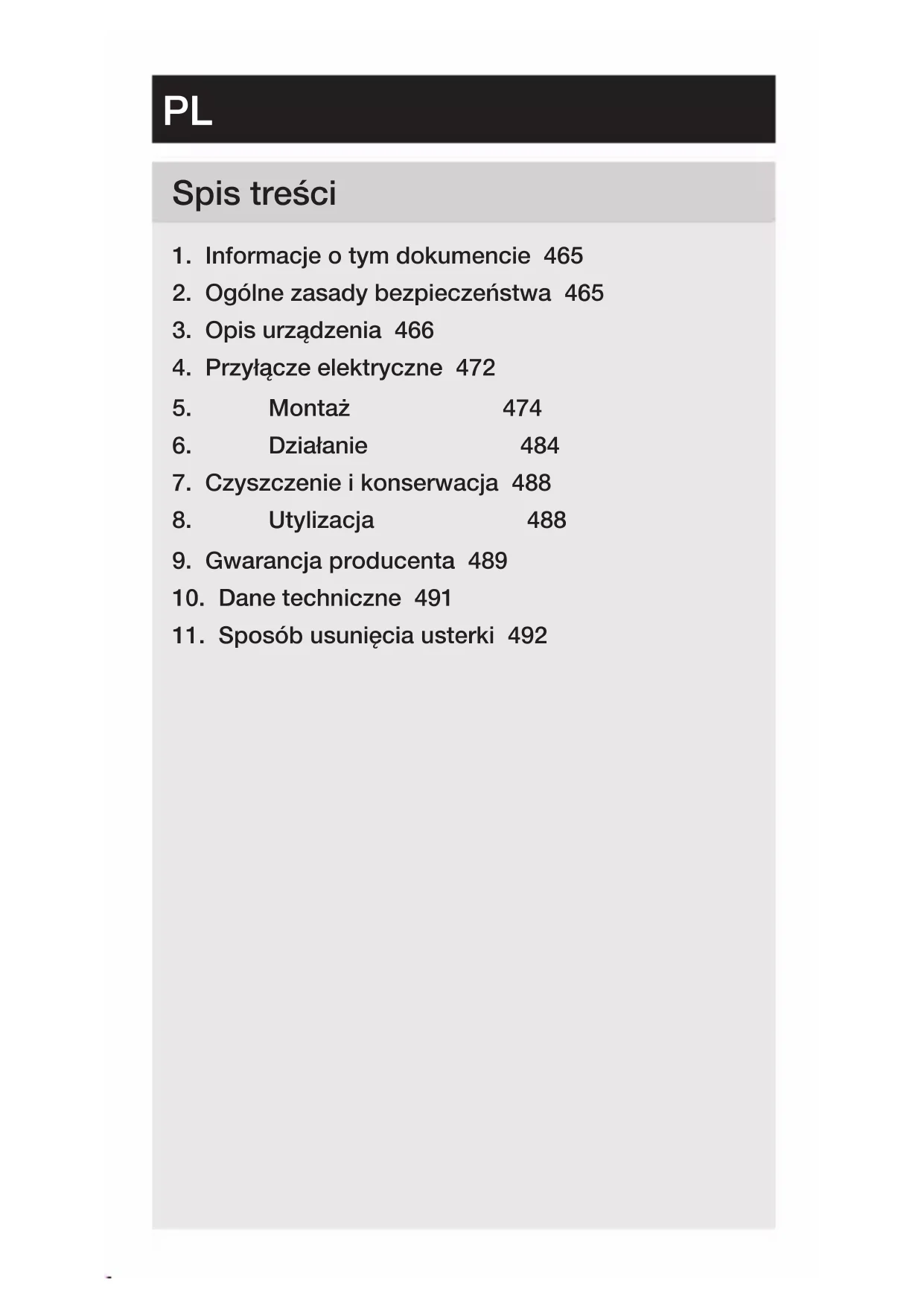 - Zamocować górną pokrywę.PL – 479 – Spis treści