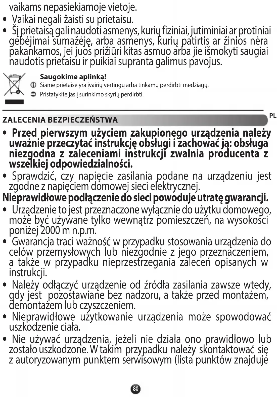 - Urządzenie to jest przeznaczone wyłącznie do użytku domowego, może być używane tylko wewnątrz pomieszczeń, na wysokości poniżej 2000 m n.p.m.