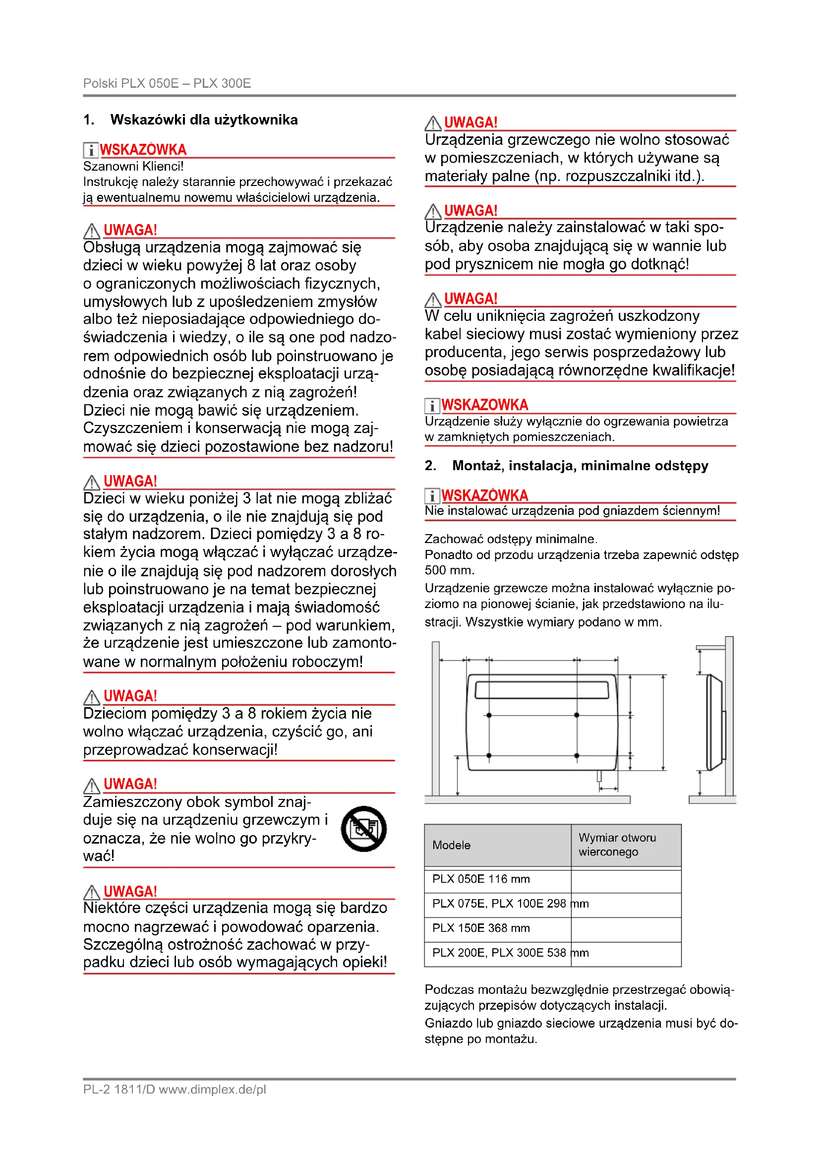 ustawić temperaturę po- mieszczenia.www.dimplex.de/pl 1811/D PL-7 PLX 050E – PLX 300E Polski