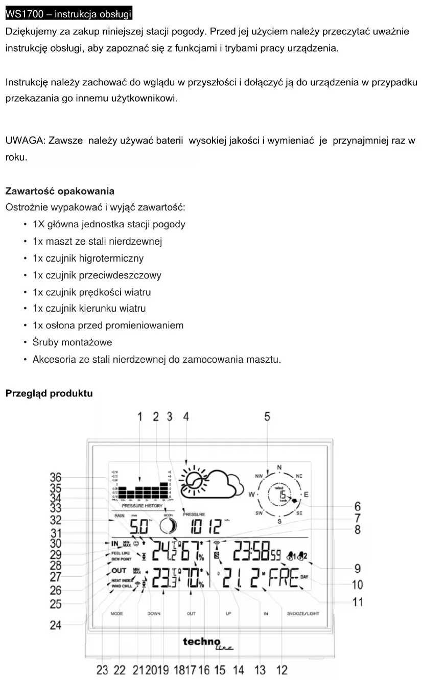 WS 1700 - Stacja Pogodowa TECHNOLINE - Bezpłatna instrukcja obsługi