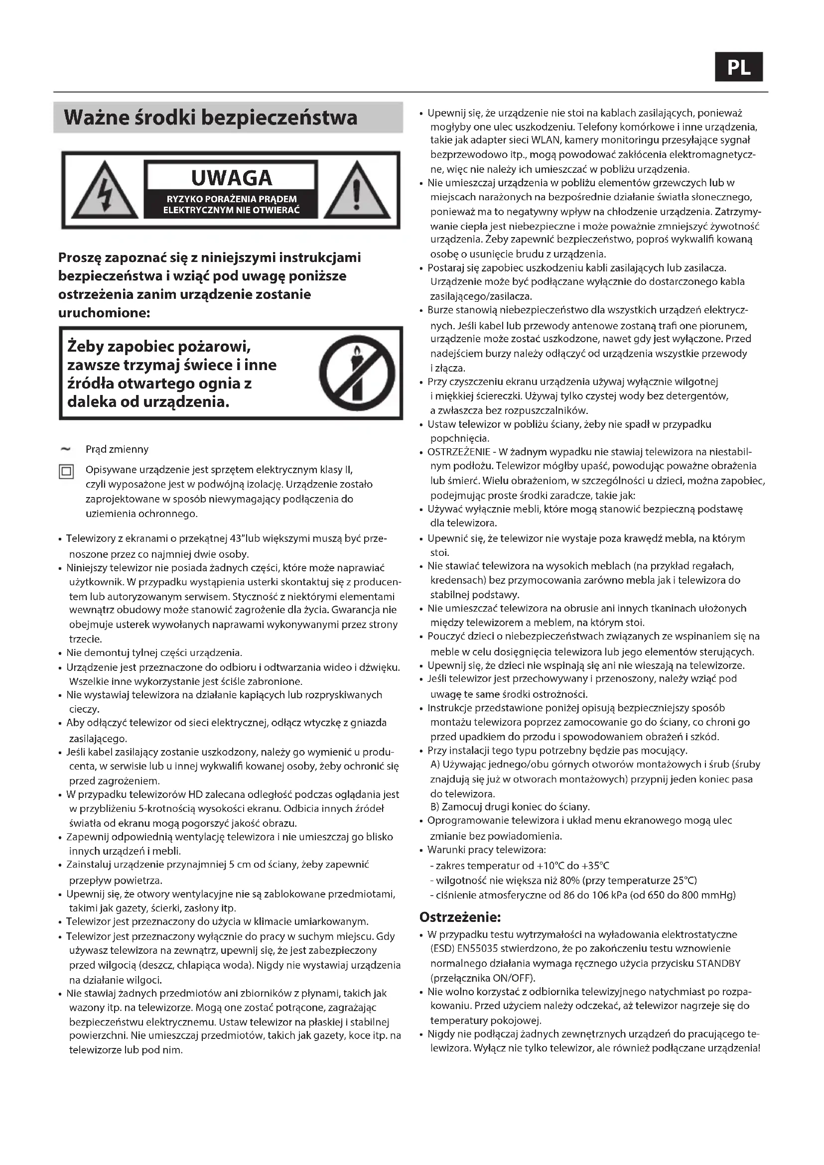 - Telewizory z ekranami o przekątnej 43”lub większymi muszą być prze- noszone przez co najmniej dwie osoby.
