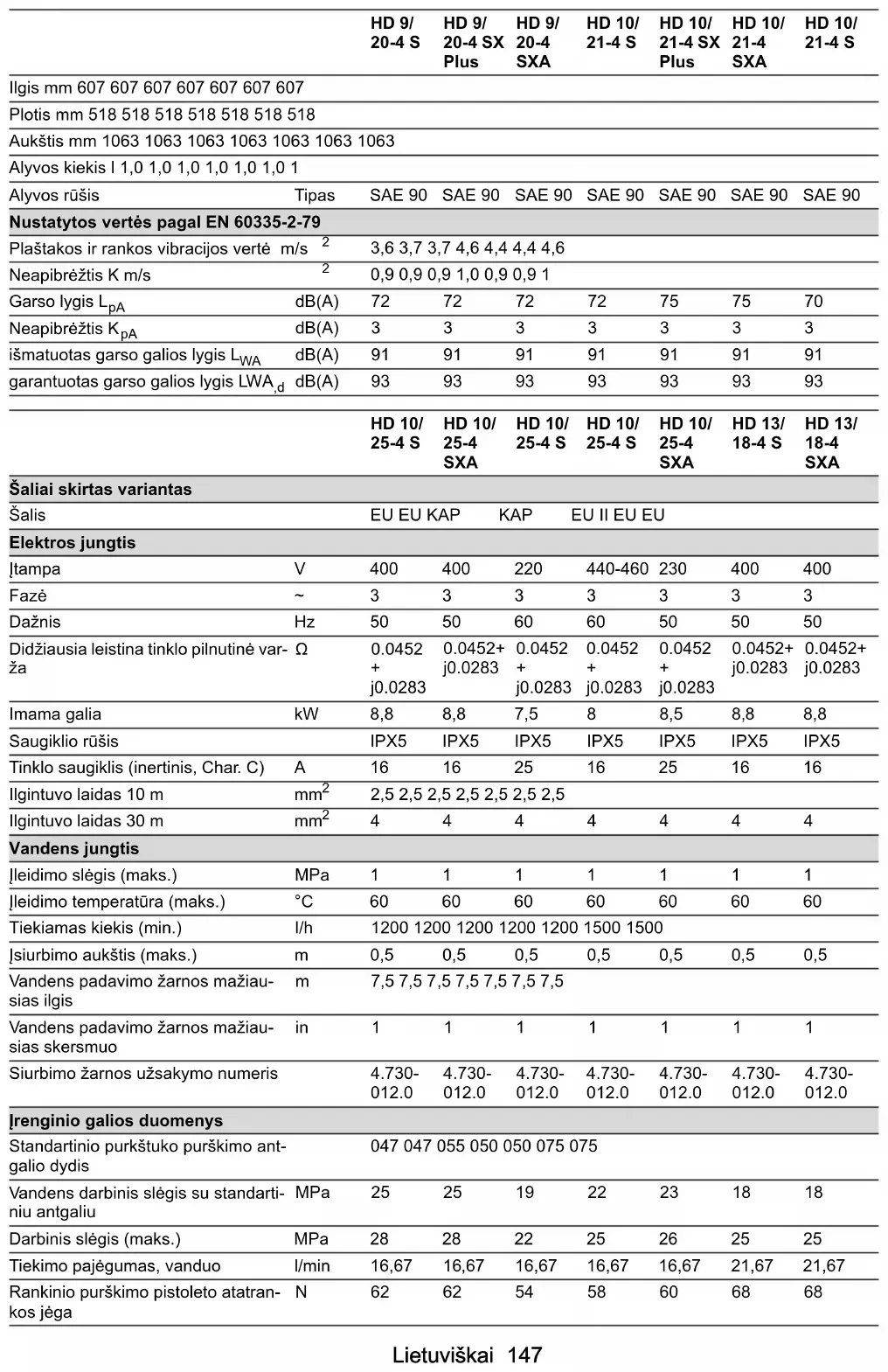 - dB(A)93939393939393 HD 10/ 25-4 S HD 10/ 25-4 SXA HD 10/ 25-4 S HD 10/ 25-4 S HD 10/ 25-4 SXA HD 13/ 18-4 S HD 13/ 18-4 SXA Wskazówki ogólne p. 148