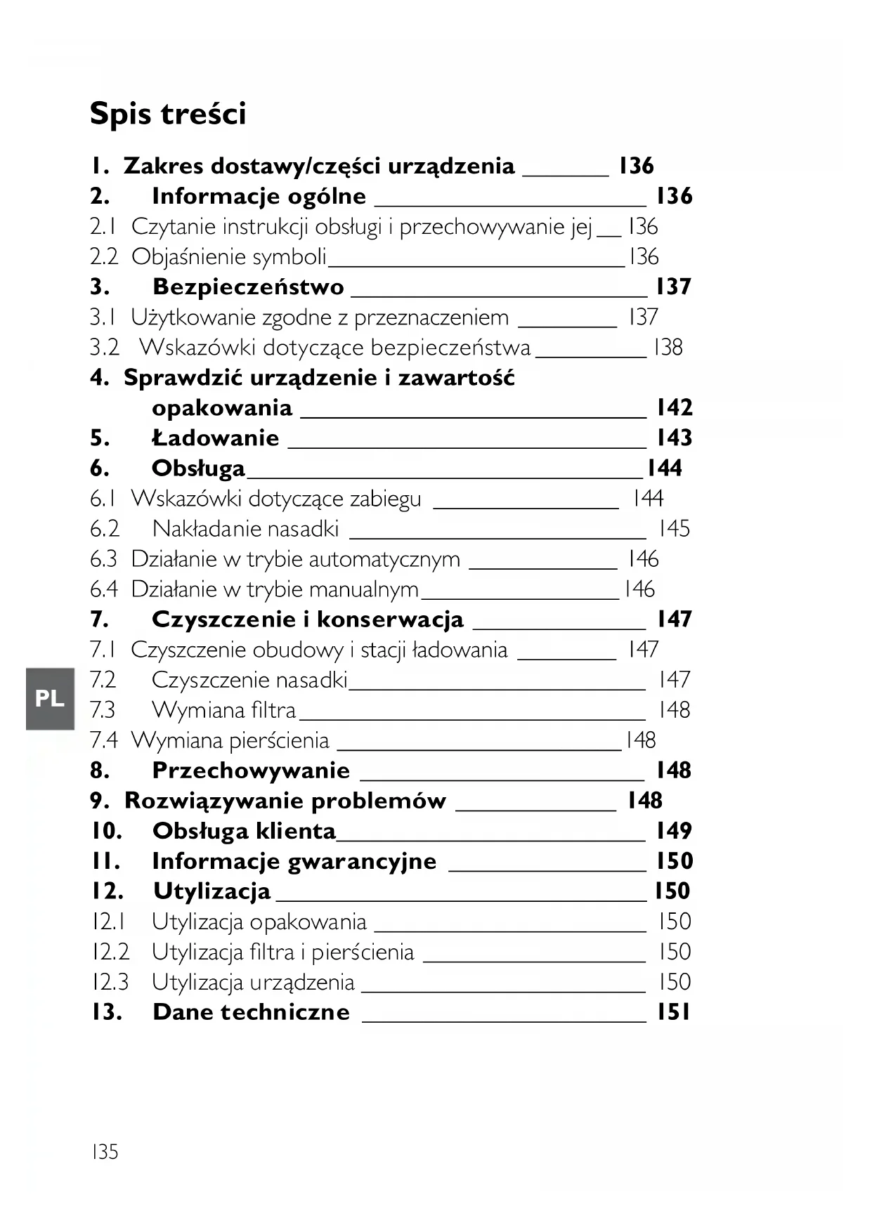 12.2 Utylizacja filtra i pierścienia __________________ 150