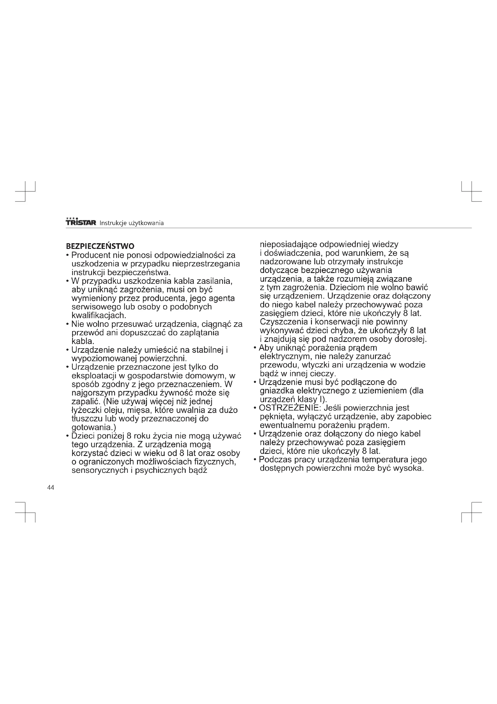 Wsparcie Wszelkie informacje iczęści zamienne można znaleźć stronie www.tristar.eu. PLNávod k použití