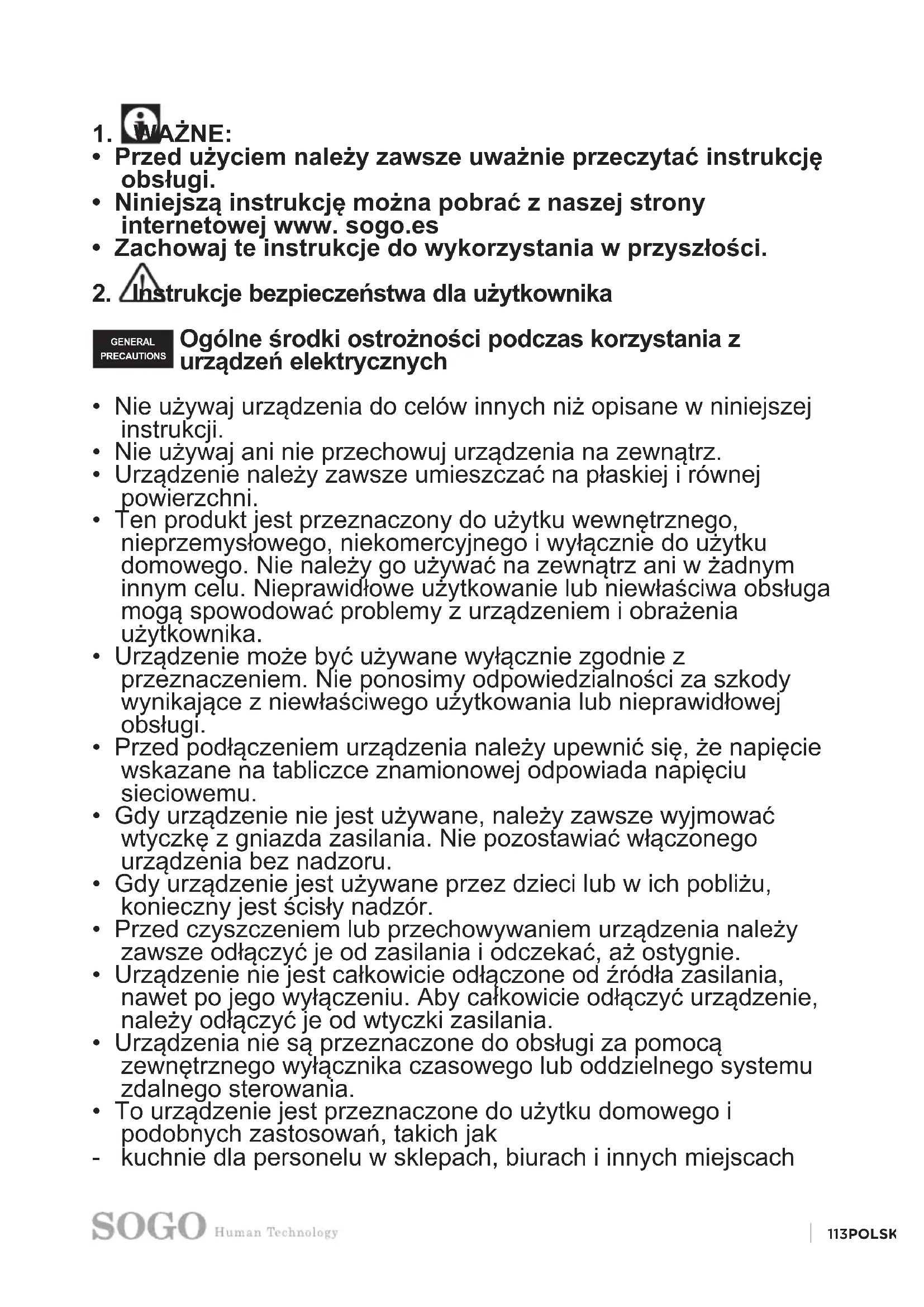 - Niniejszą instrukcję można pobrać z naszej strony internetowej www. sogo.es