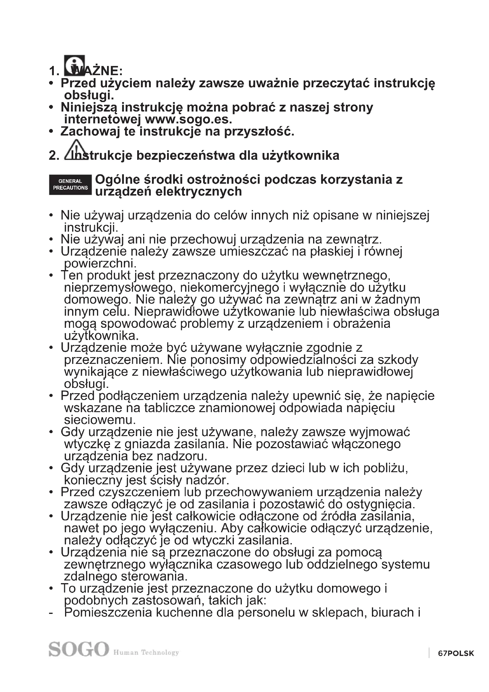 - Niniejszą instrukcję można pobrać z naszej strony internetowej www.sogo.es.