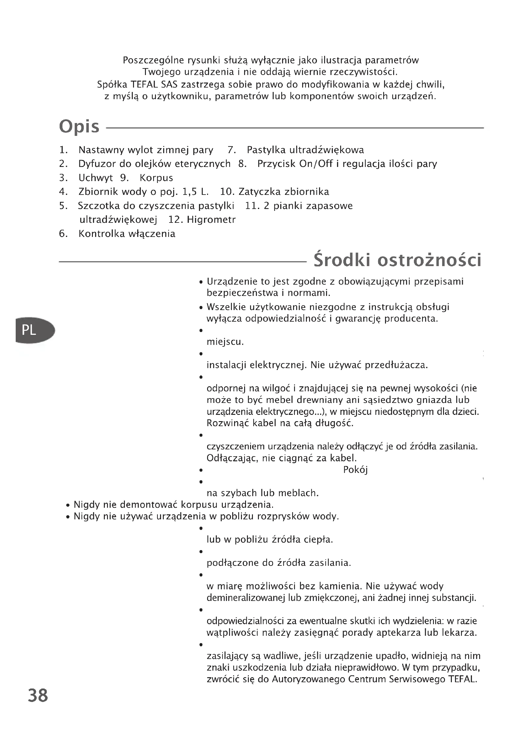 - Tefal nie gwarantuje jakości wydzielanych zapachów i nie bierze odpowiedzialności za ewentualne skutki ich wydzielenia: w razie wątpliwości należy zasięgnąć porady aptekarza lub lekarza.