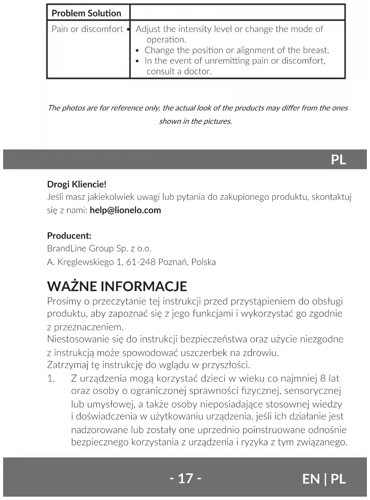 - W przypadku nieprzemijającego bólu lub dyskomfortu, skonsultuj się z lekarzem. Zdjęcia mają charakter poglądowy, rzeczywisty wygląd produktów może różnić się od prezentowanego na zdjęciach.‑ 28 ‑