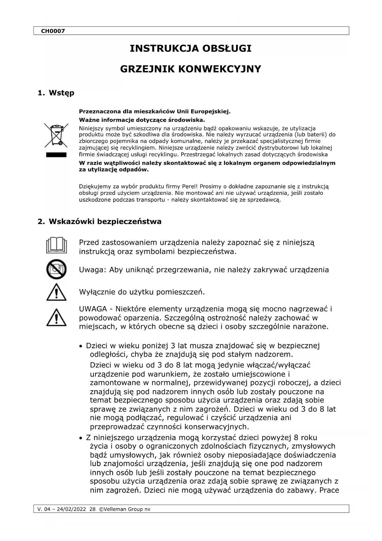 CH0007 - Ogrzewanie Perel - Bezpłatna instrukcja obsługi