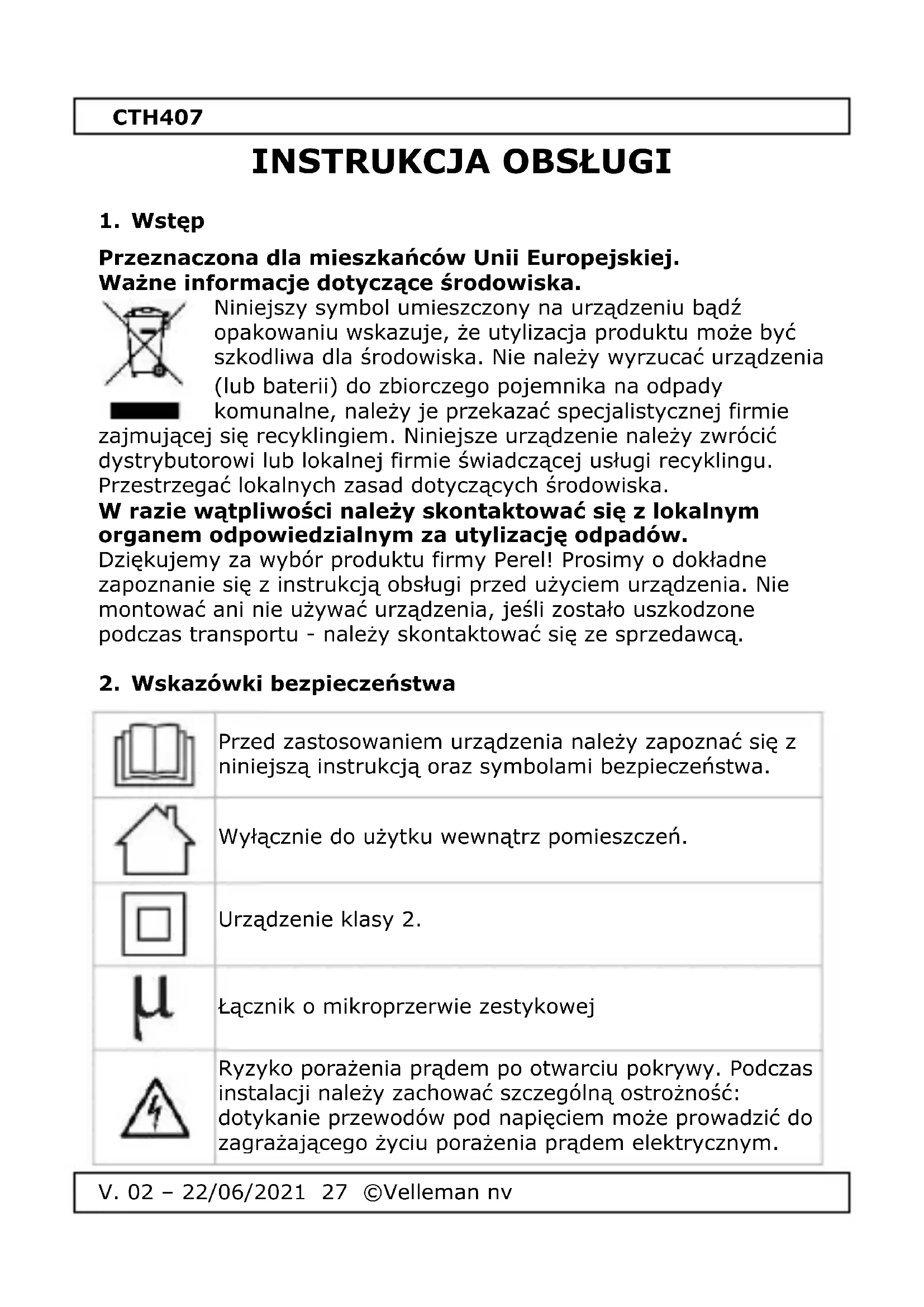 INSTRUKCJA OBSŁUGI CTH407 Perel