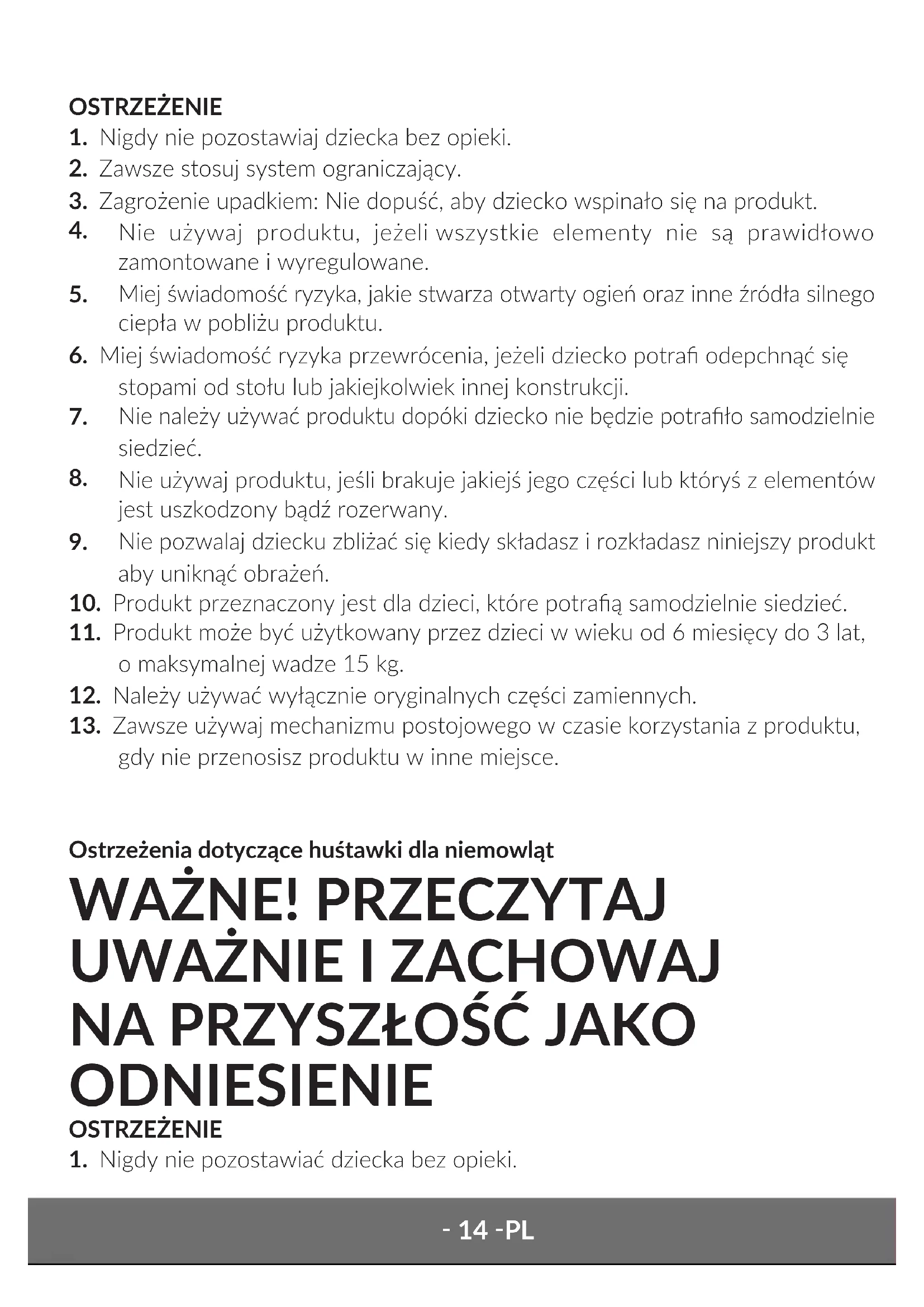 1. Nigdy nie pozostawiać dziecka bez opieki.‑ 15 ‑ PL
