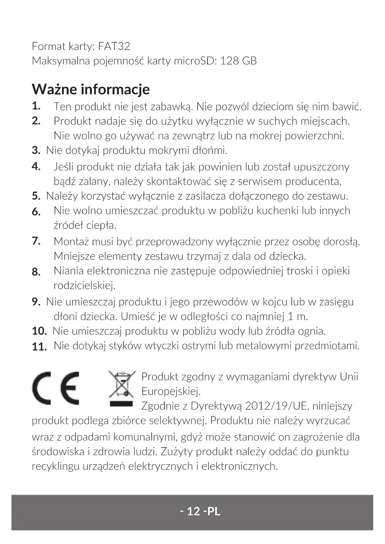 10. Nie umieszczaj produktu w pobliżu wody lub źródła ognia.