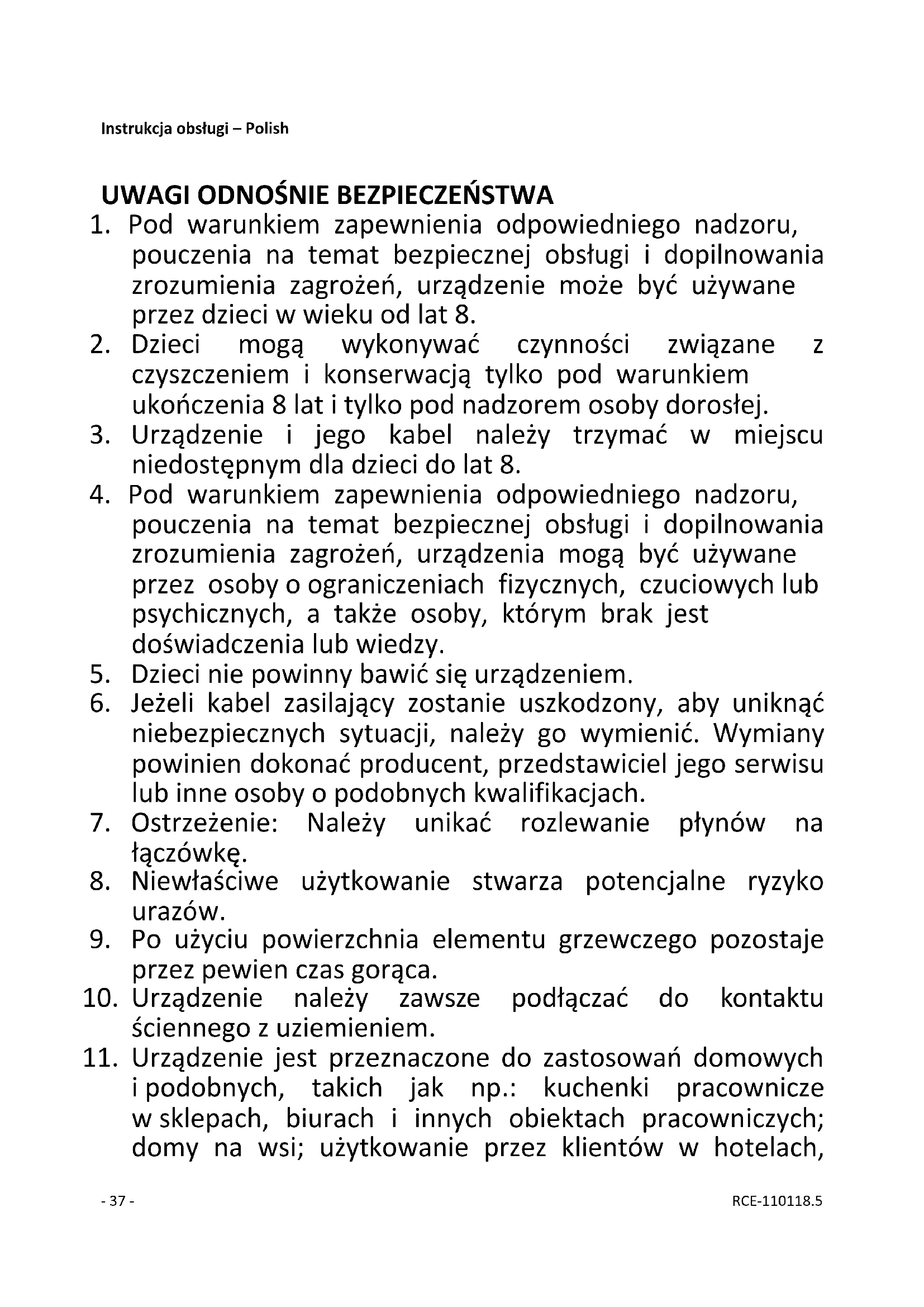 z gorącym olejem lub innymi płynami należy zachować maksymalną ostrożność.- 39 - RCE-110118.5