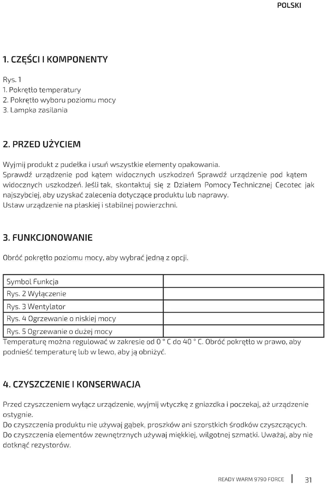 Ready Warm 9790 Force - Ogrzewanie CECOTEC - Bezpłatna instrukcja obsługi