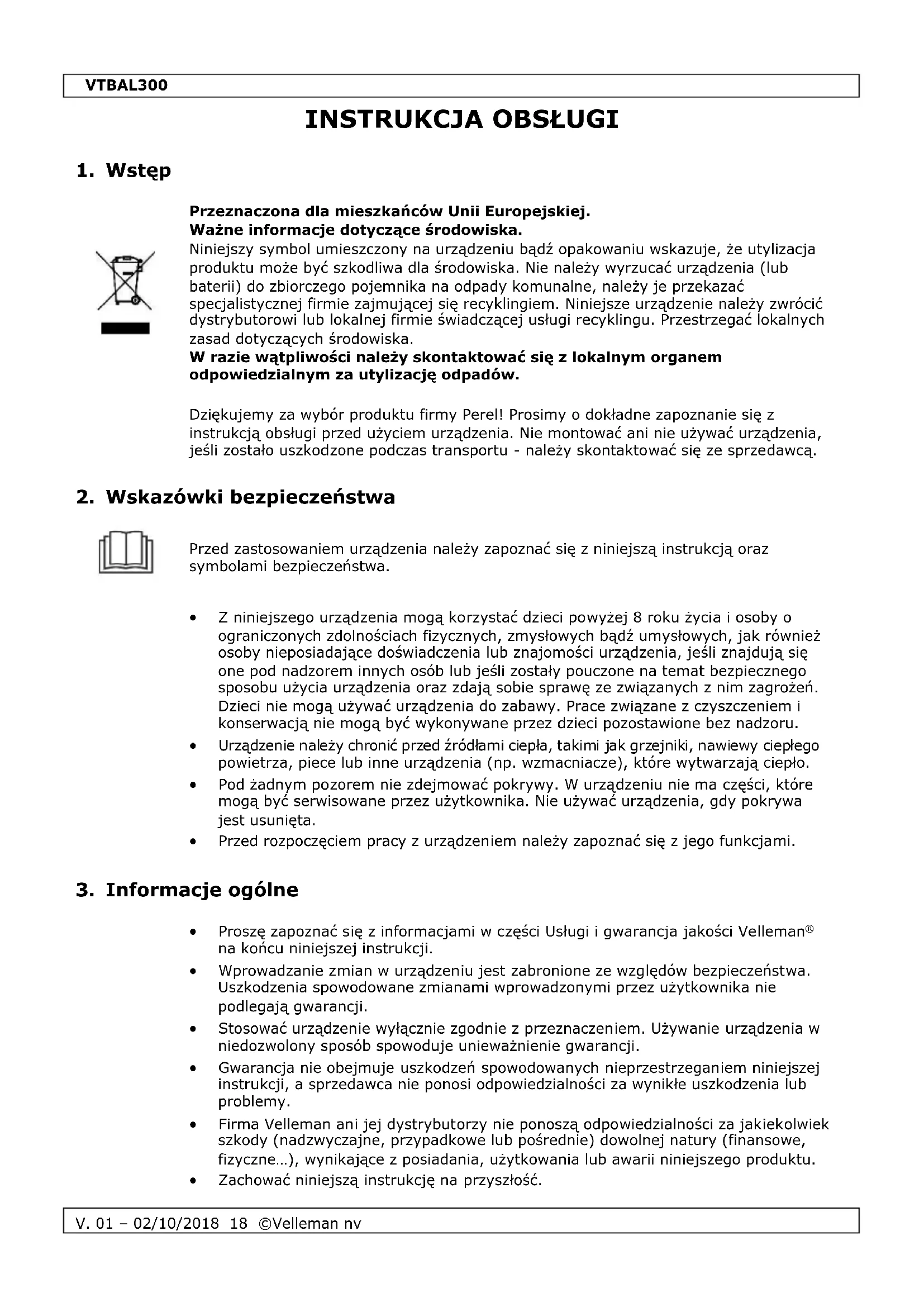 INSTRUKCJA OBSŁUGI VTBAL300 Perel