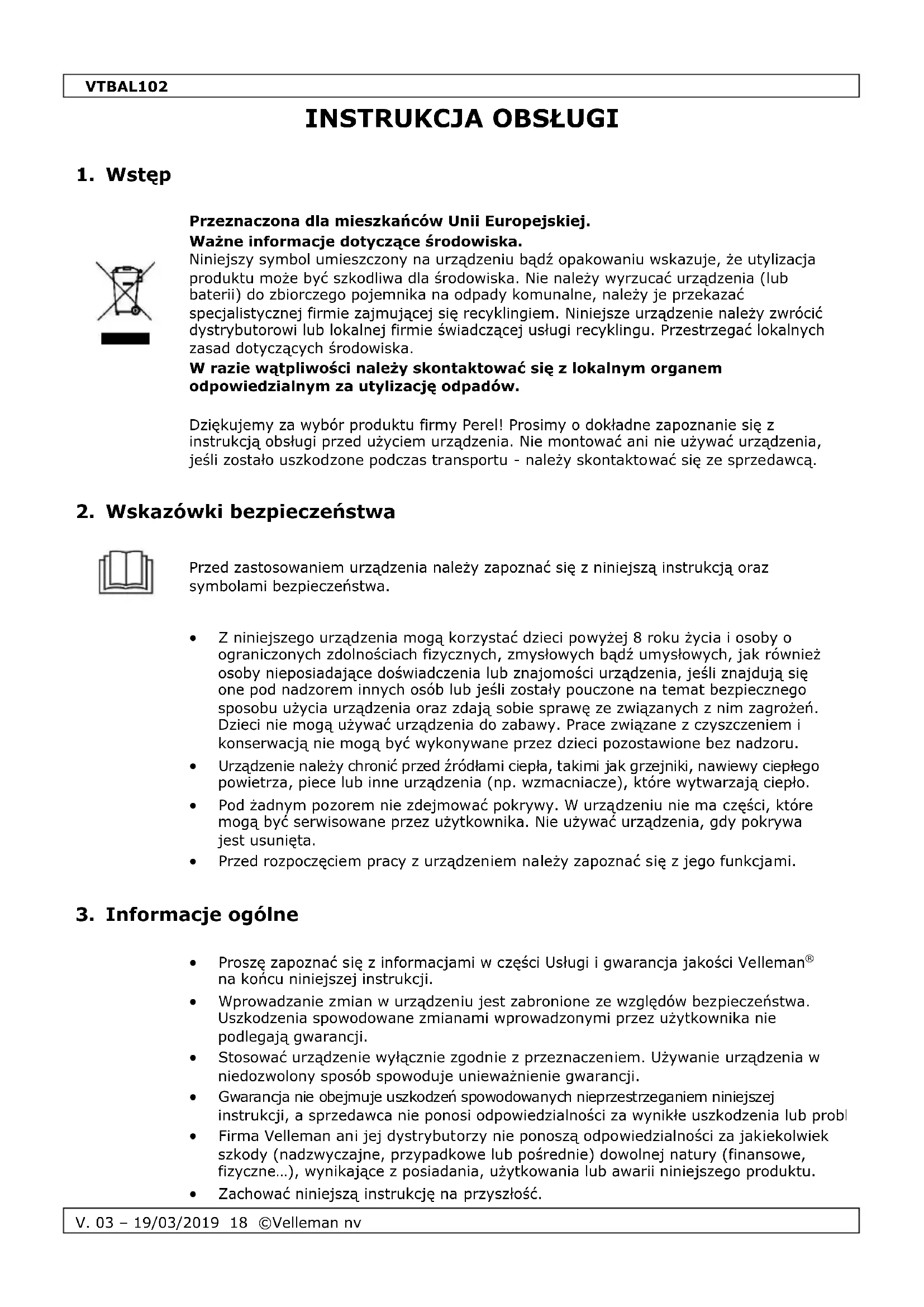 INSTRUKCJA OBSŁUGI VTBAL102 Perel