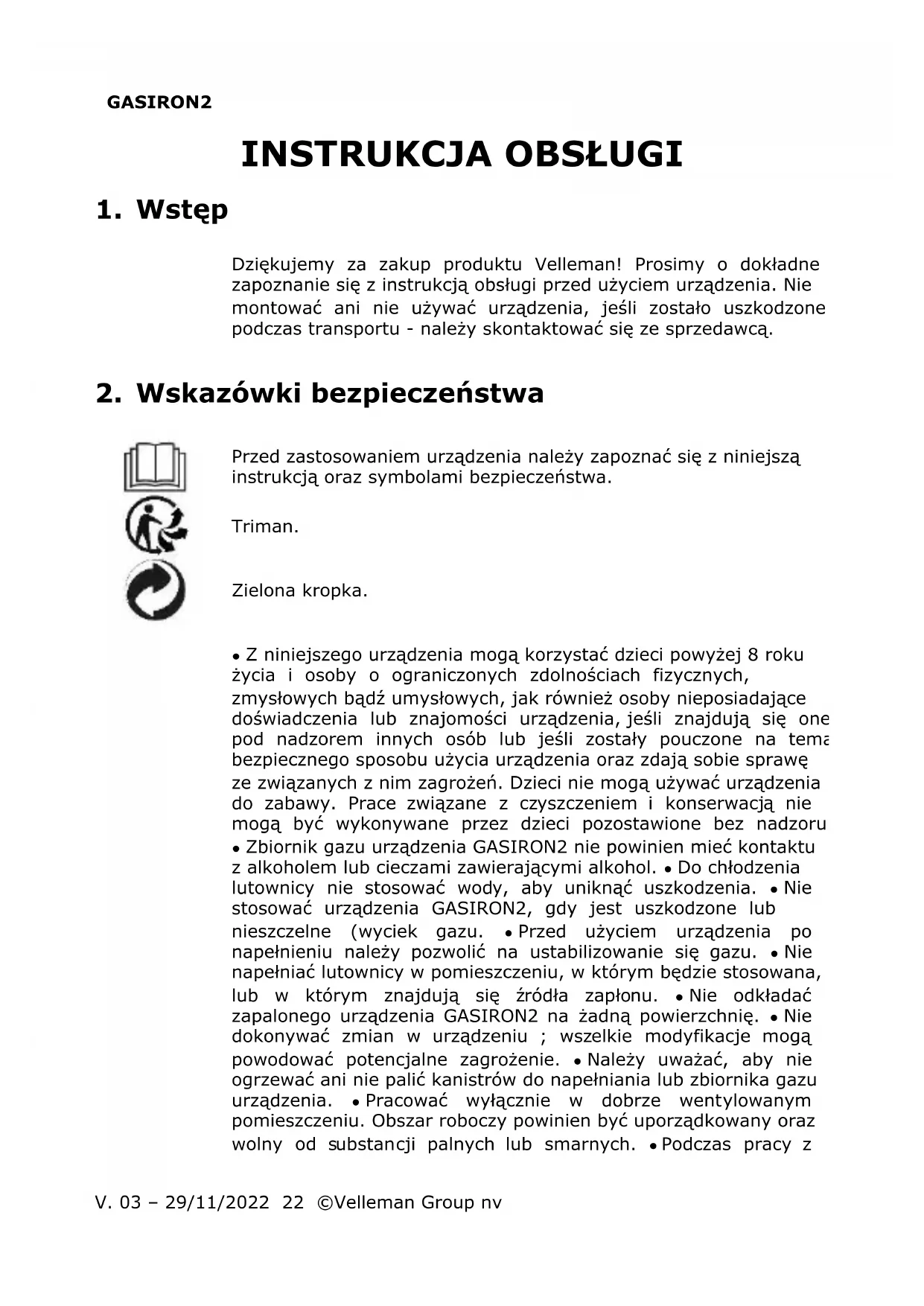 INSTRUKCJA OBSŁUGI GASIRON2 VELLEMAN