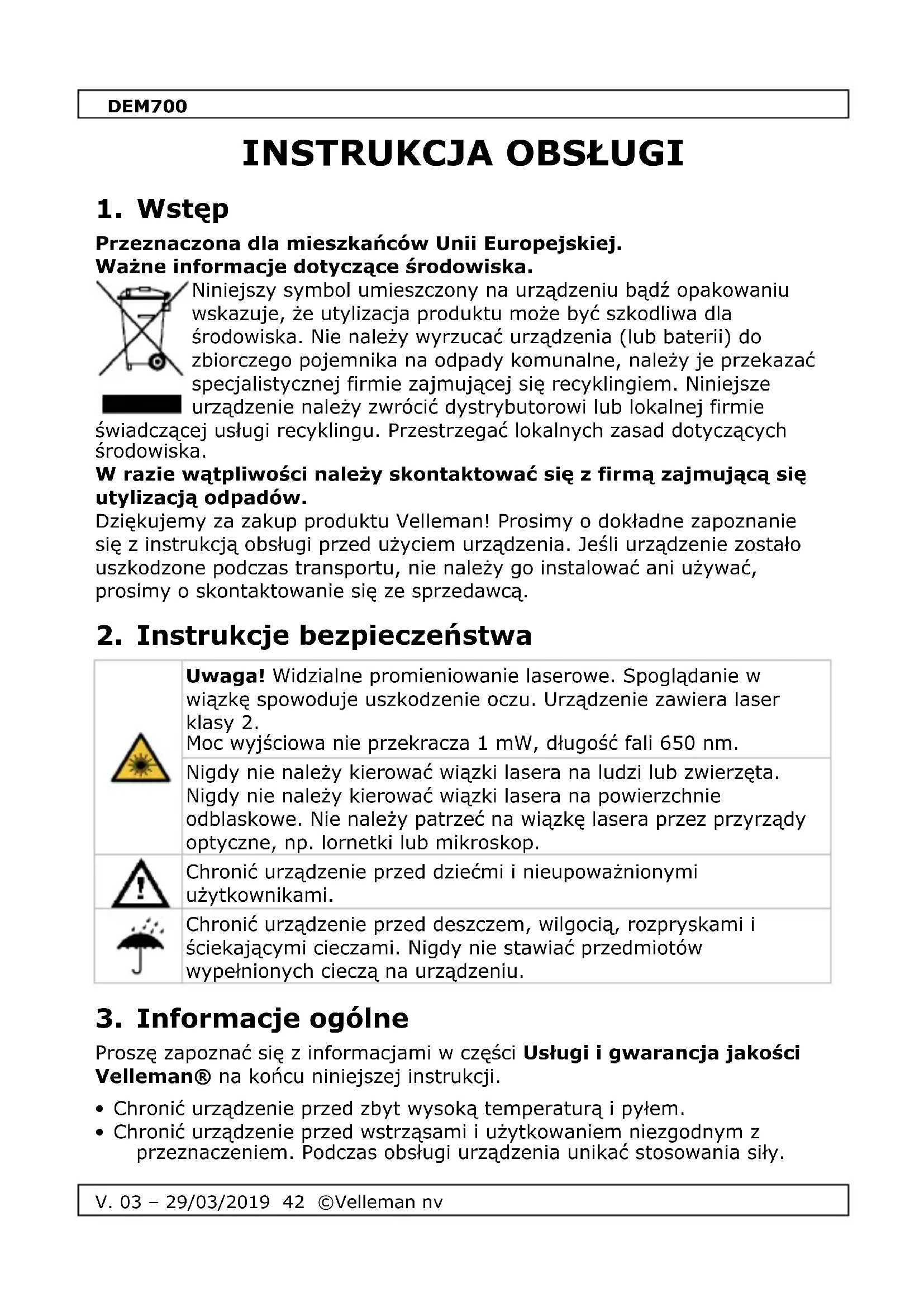 INSTRUKCJA OBSŁUGI DEM700 VELLEMAN