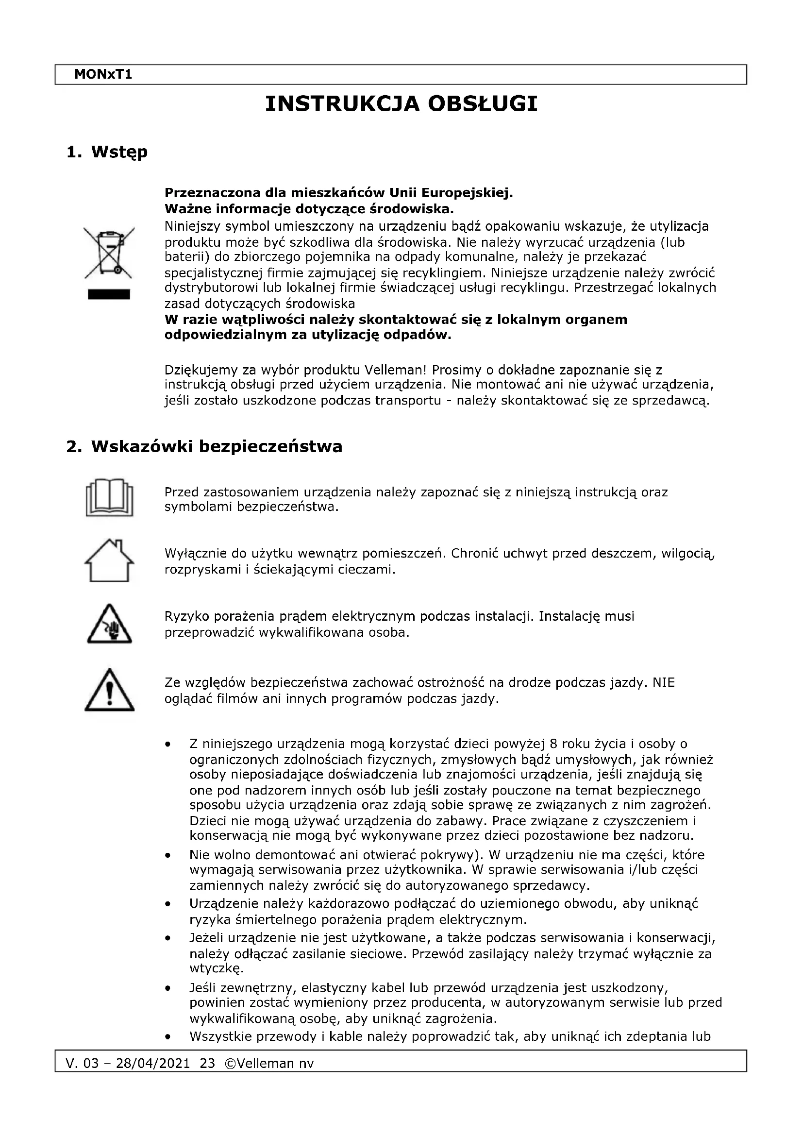 INSTRUKCJA OBSŁUGI MON7T1 VELLEMAN