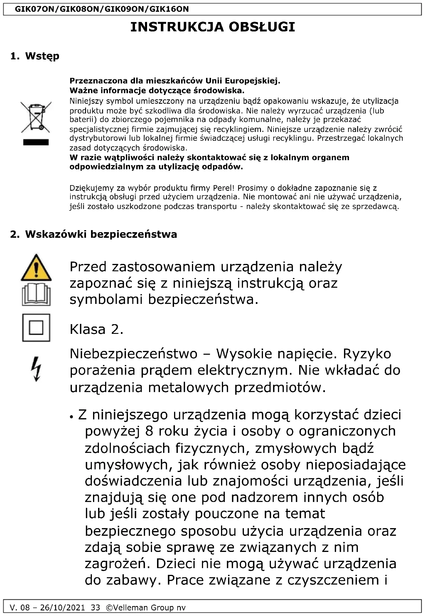 INSTRUKCJA OBSŁUGI GIK09ON Perel