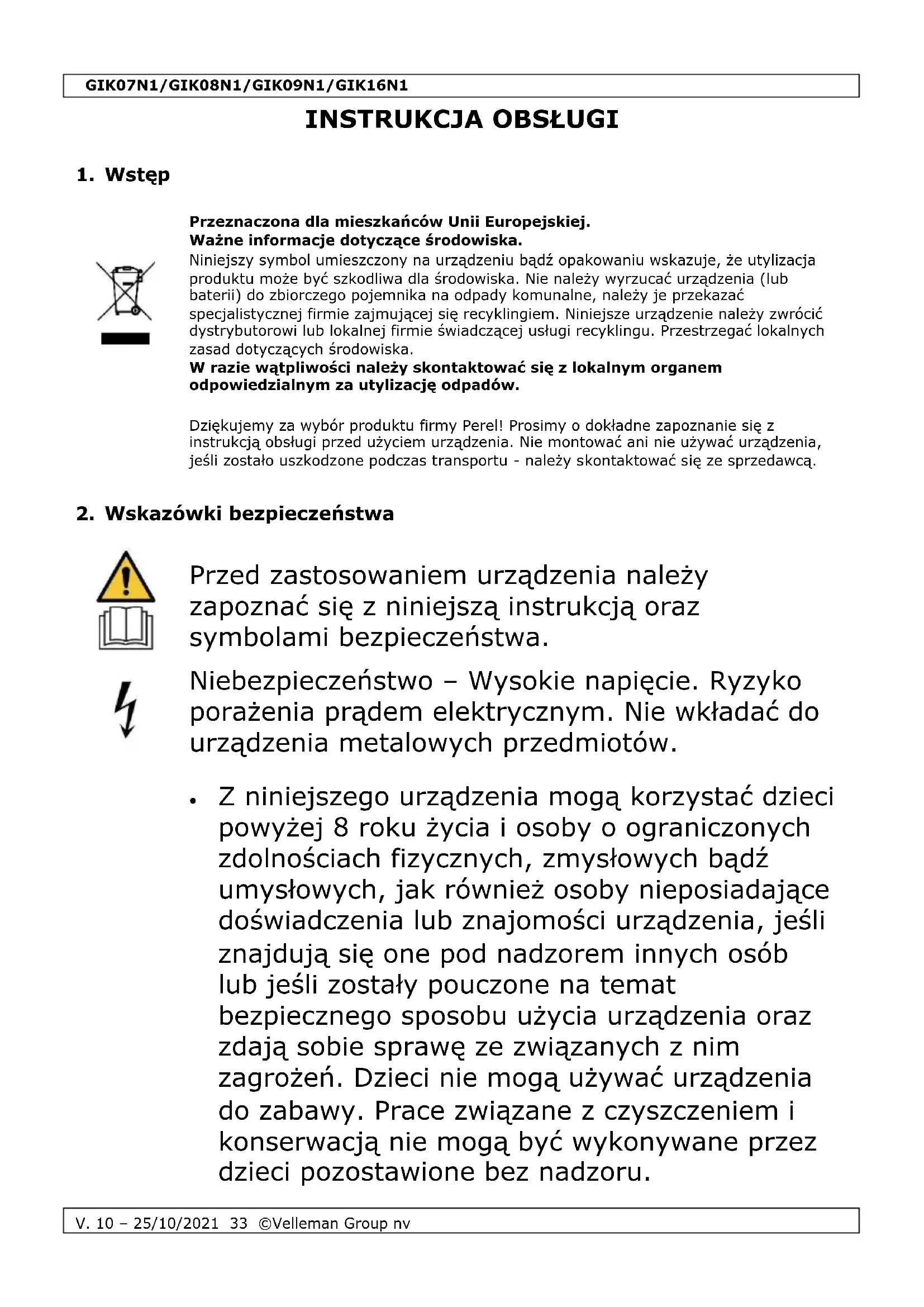 INSTRUKCJA OBSŁUGI GIK08N1 Perel