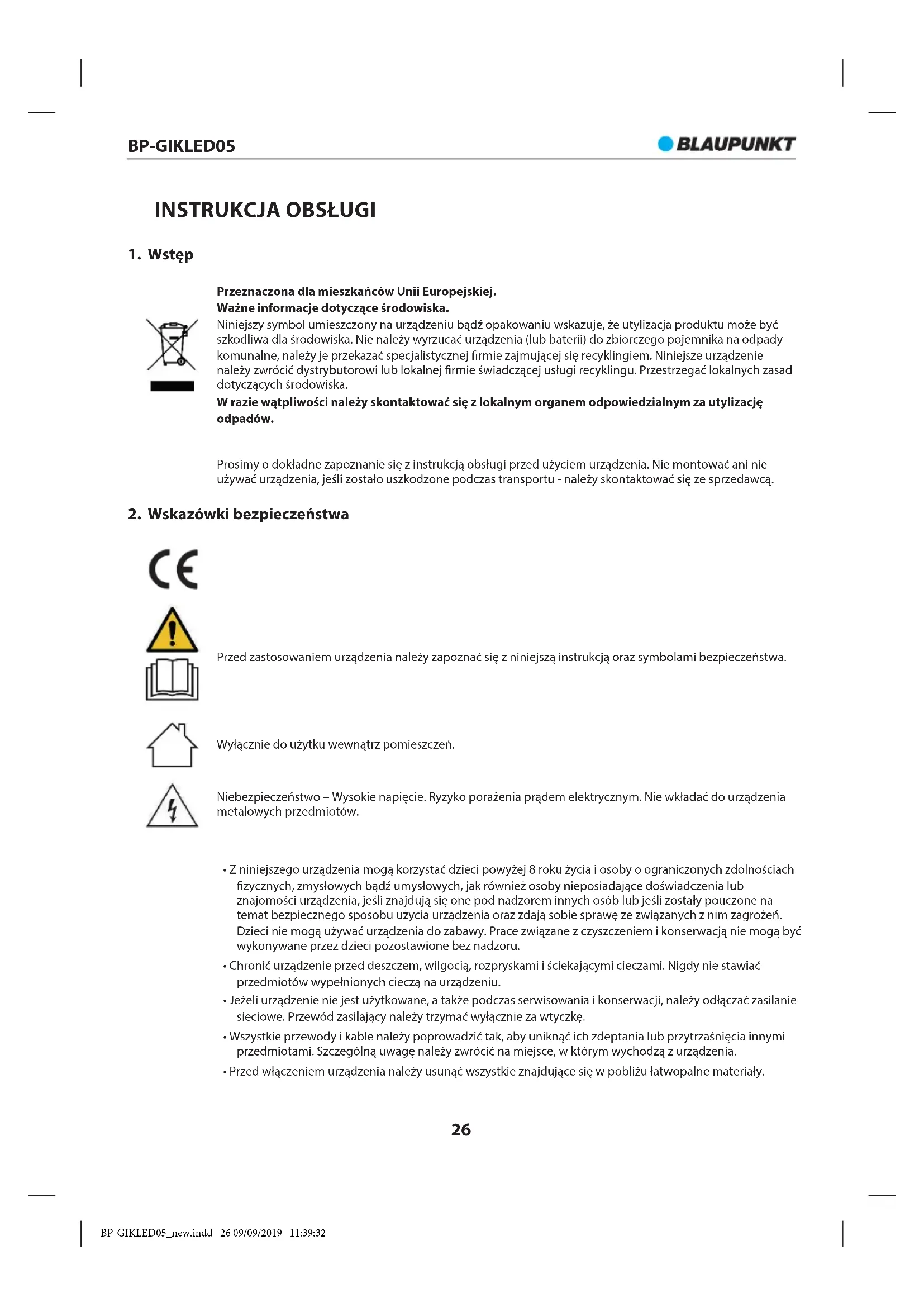INSTRUKCJA OBSŁUGI BPGIKLED05 BLAUPUNKT