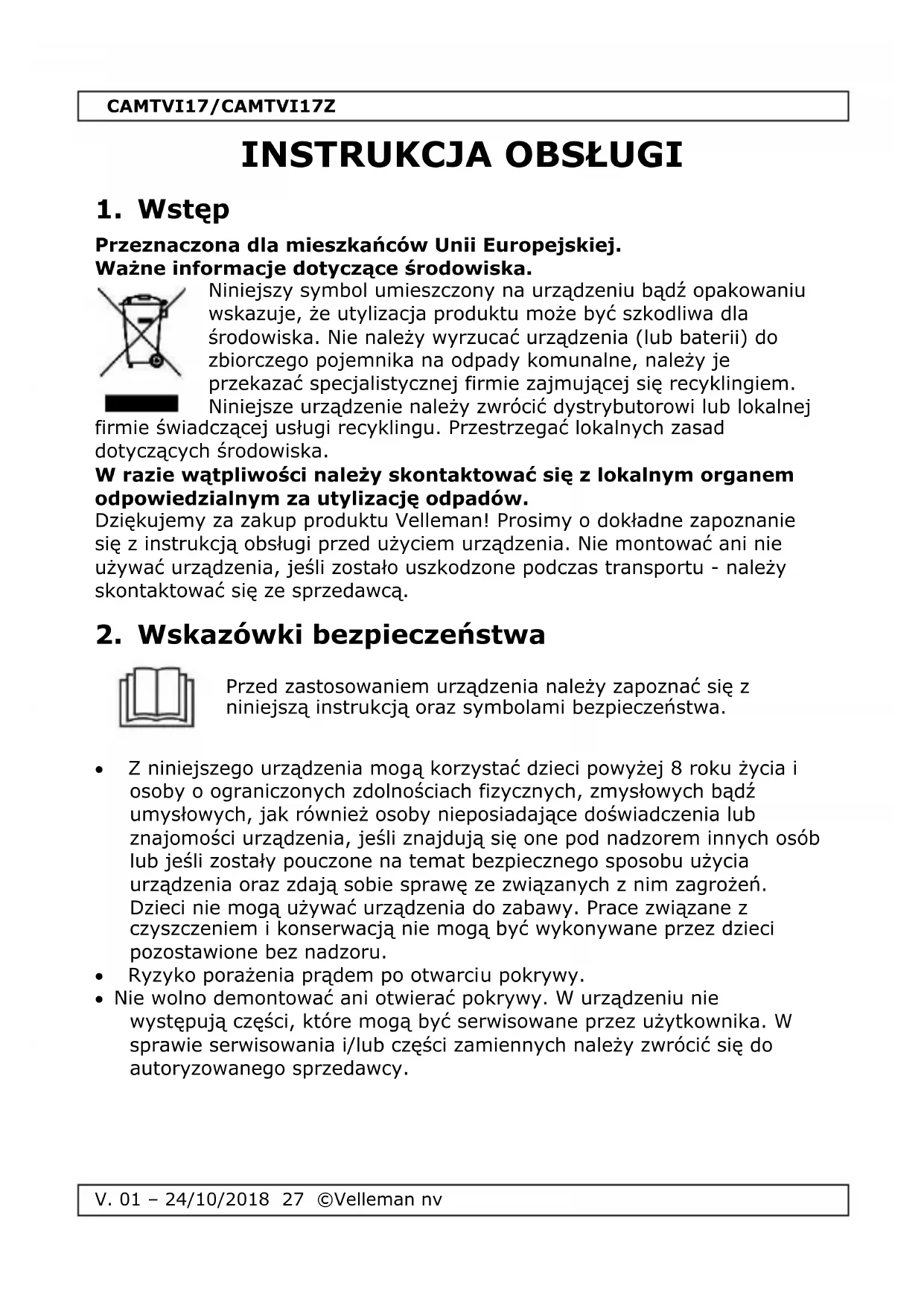 INSTRUKCJA OBSŁUGI CAMTVI17 VELLEMAN