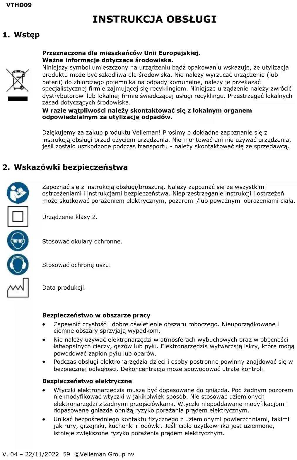 INSTRUKCJA OBSŁUGI VTHD09 VELLEMAN