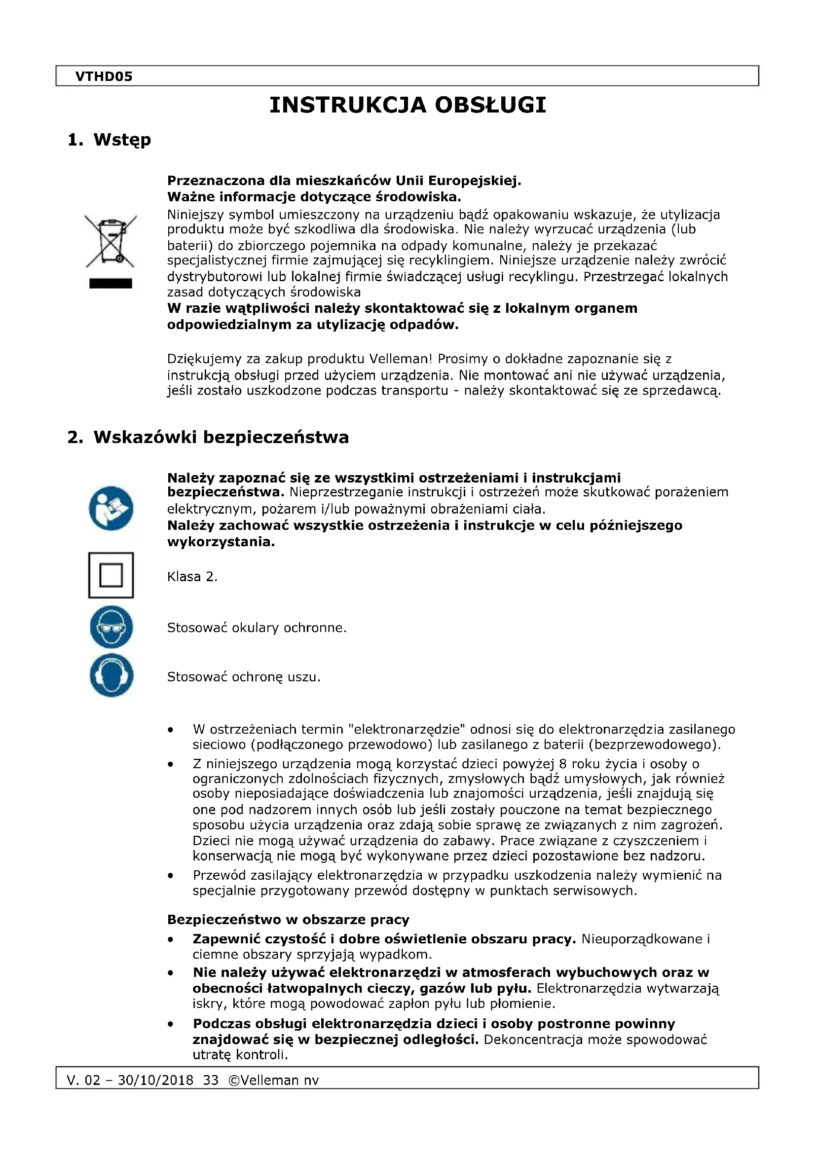 INSTRUKCJA OBSŁUGI VTHD05 VELLEMAN