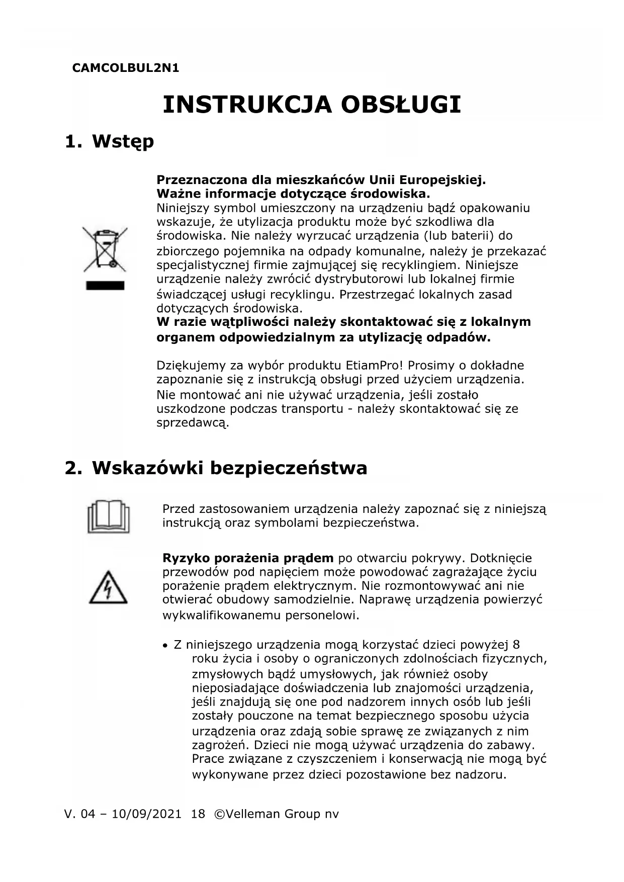 INSTRUKCJA OBSŁUGI CAMCOLBUL2N1 EtiamPro