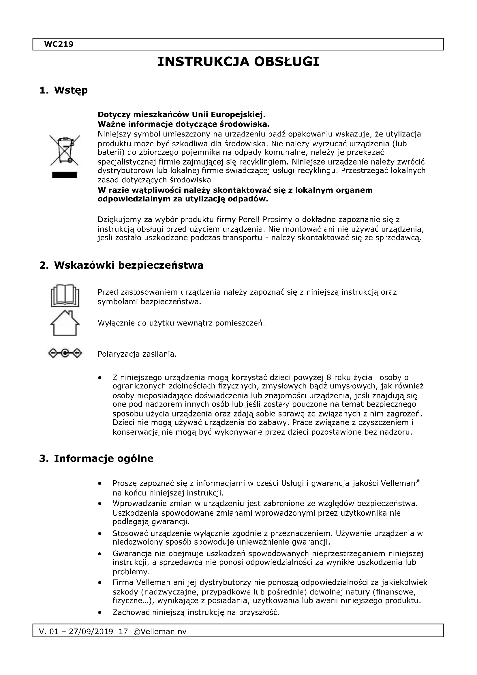 INSTRUKCJA OBSŁUGI WC219 Perel