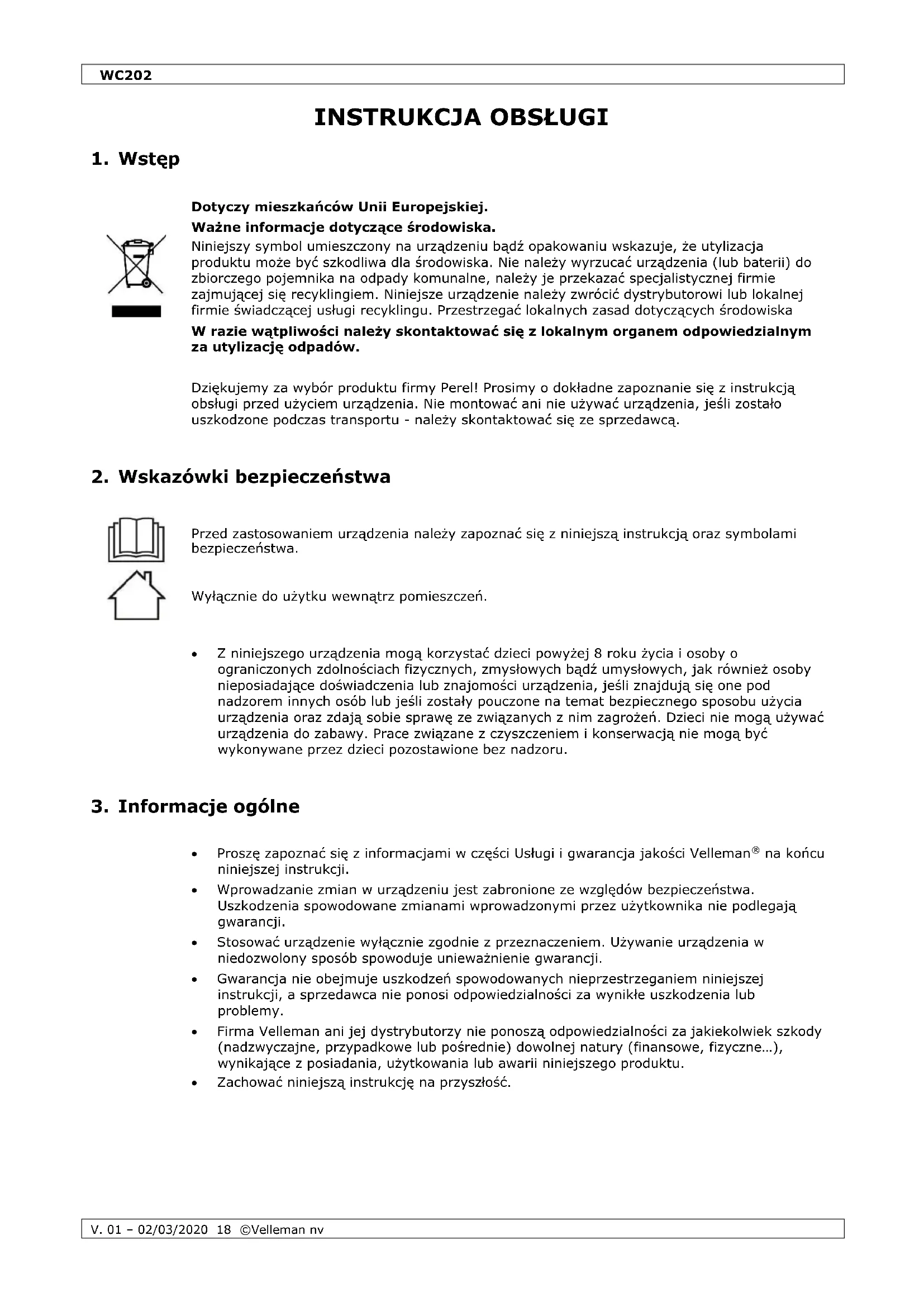 INSTRUKCJA OBSŁUGI WC202 Perel