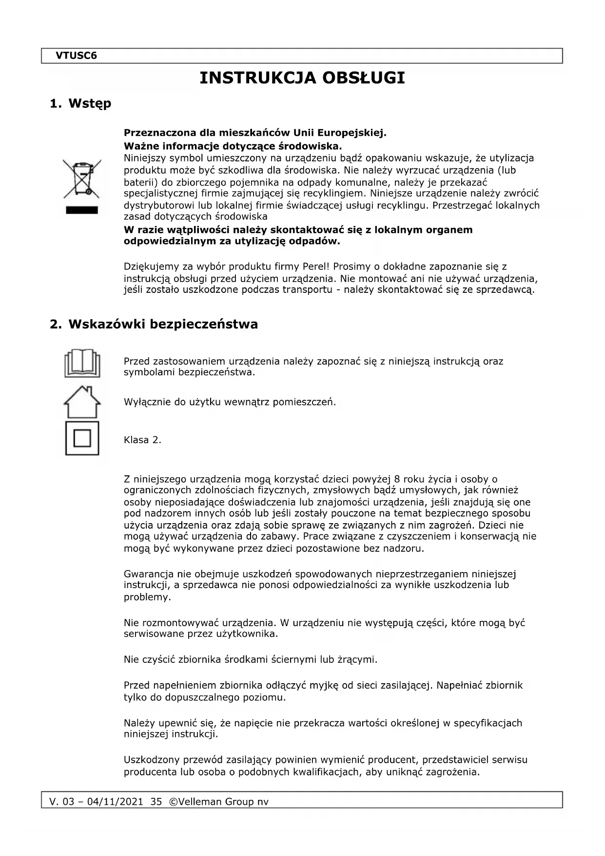 INSTRUKCJA OBSŁUGI VTUSC6 Perel