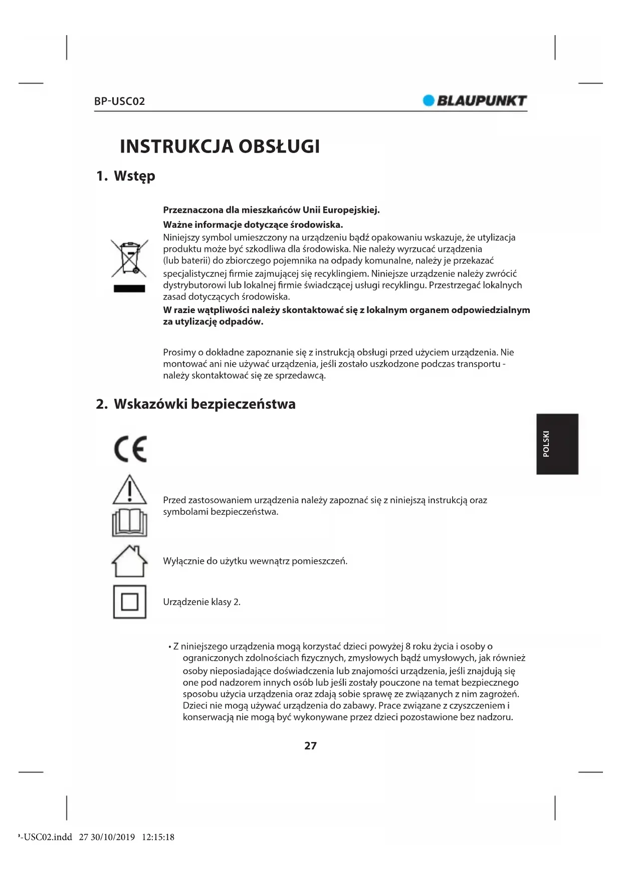 INSTRUKCJA OBSŁUGI BPUSC02 BLAUPUNKT