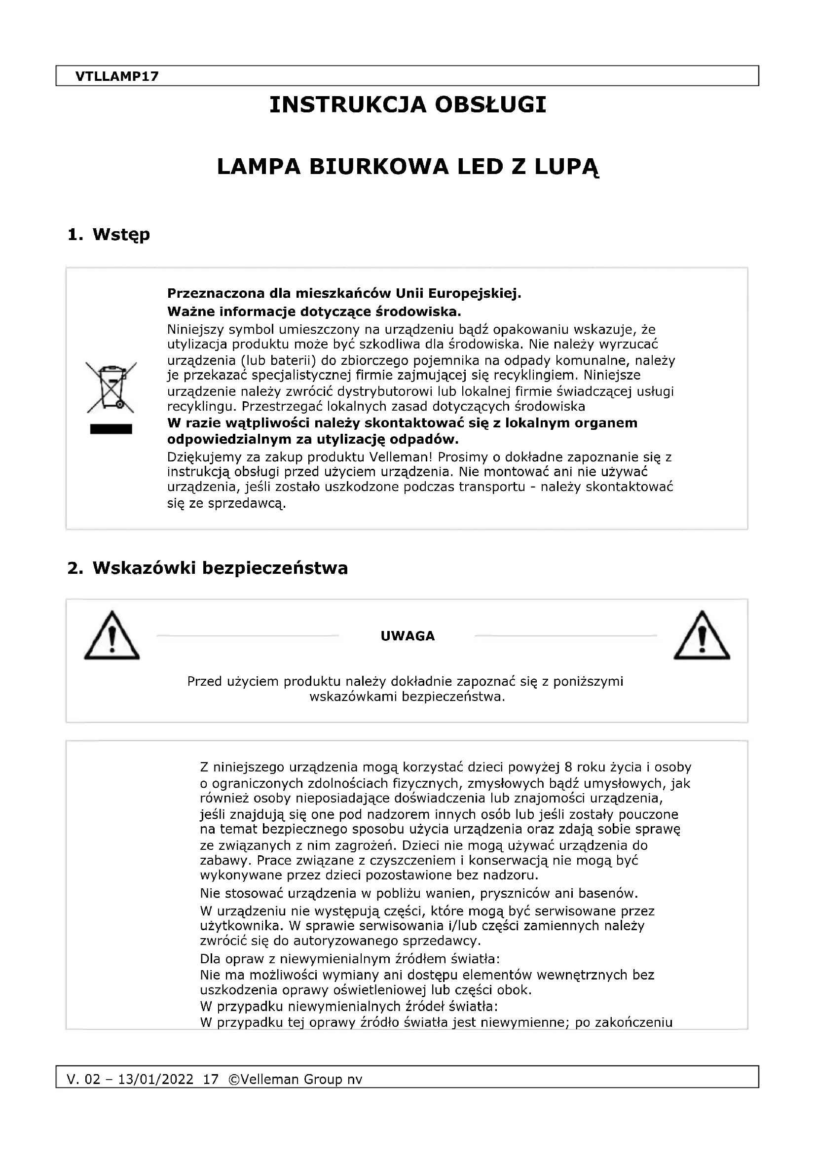 INSTRUKCJA OBSŁUGI VTLLAMP17 VELLEMAN