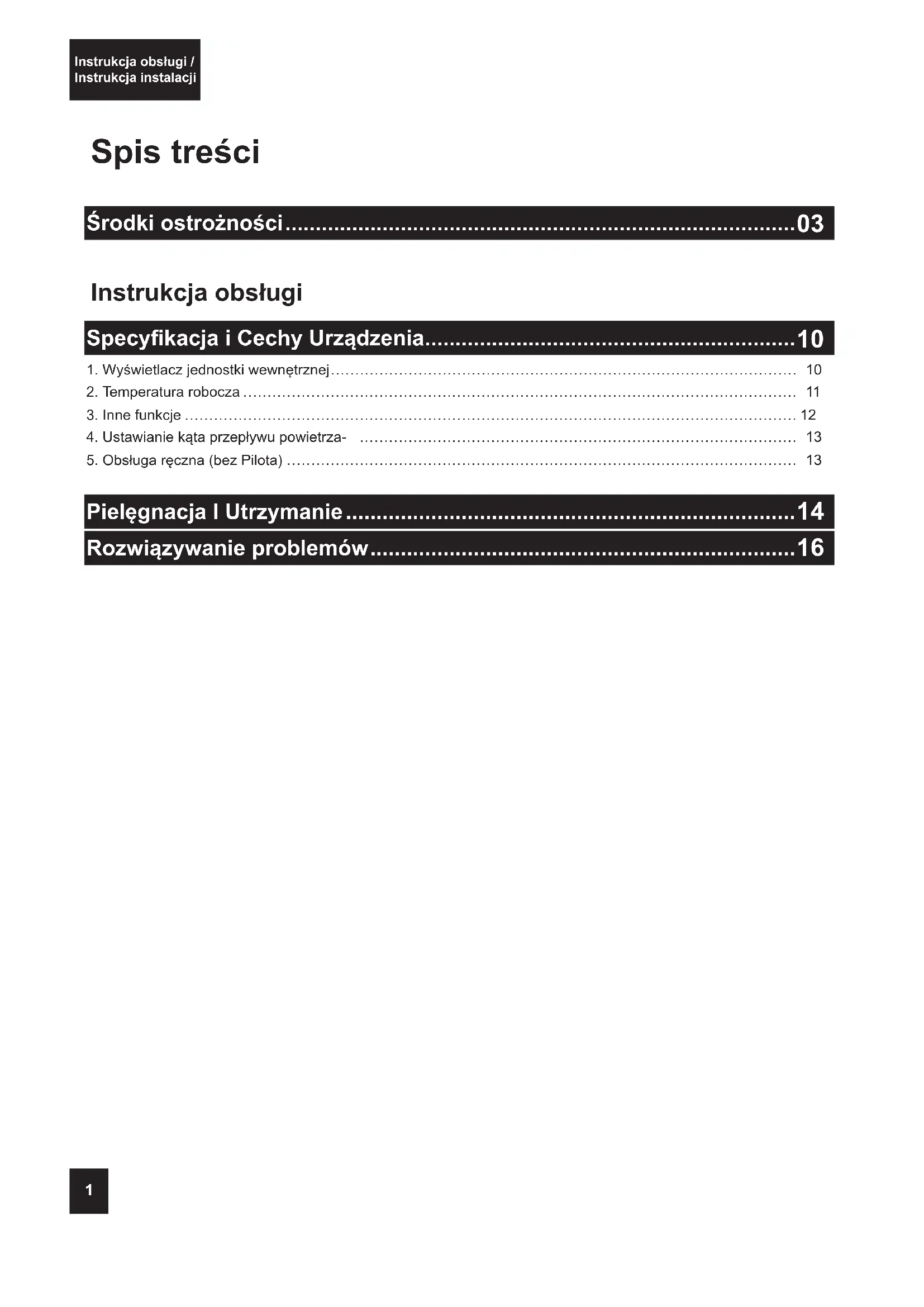 1. Wyświetlacz jednostki wewnętrznej …………………………………………………………………………………… 10
