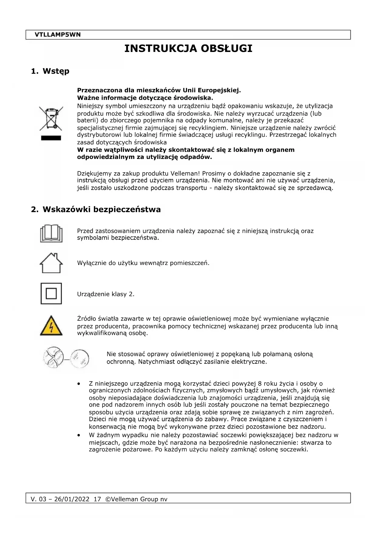 INSTRUKCJA OBSŁUGI VTLLAMP5WN VELLEMAN