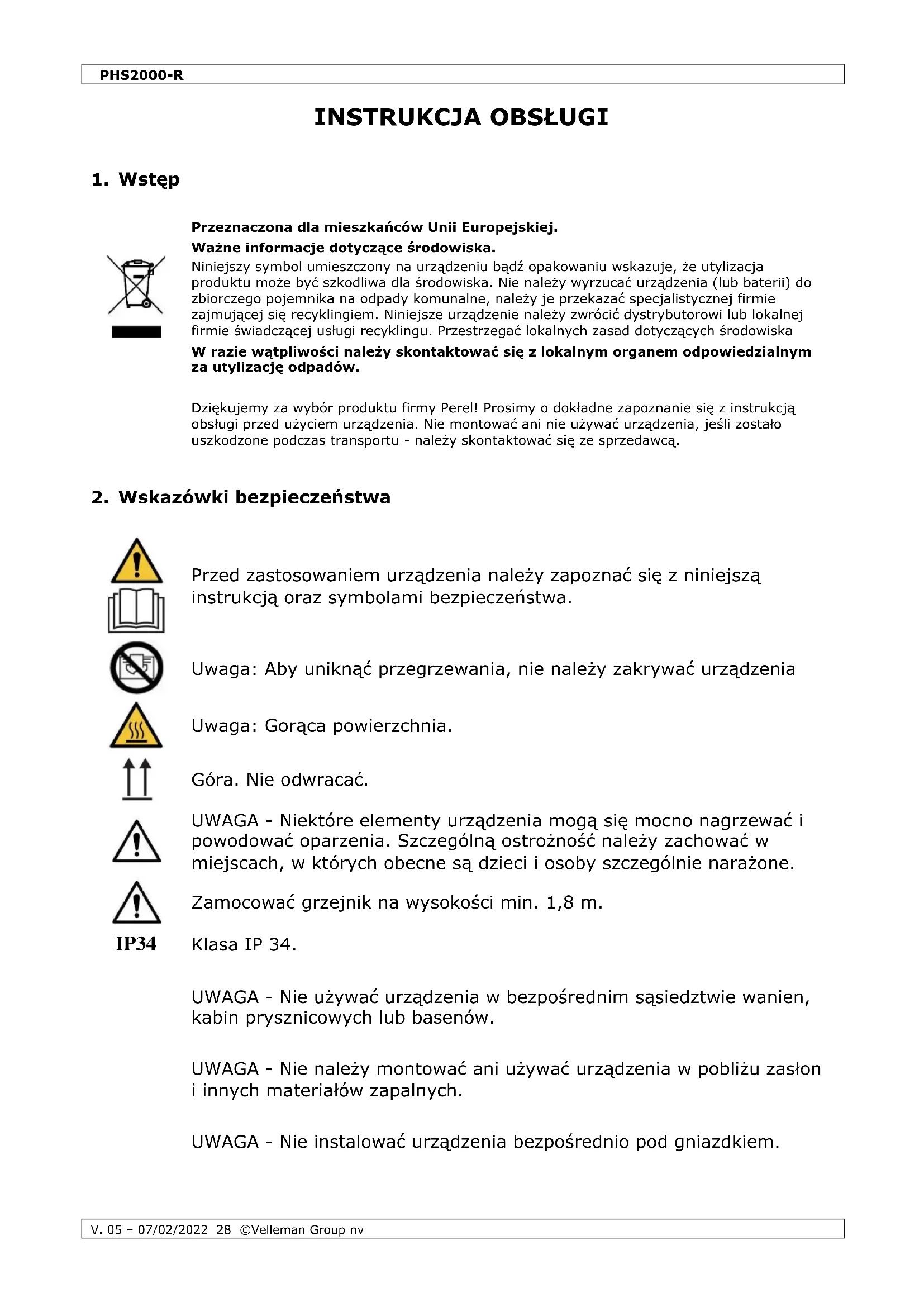 PHS2000R - Ogrzewanie Perel - Bezpłatna instrukcja obsługi
