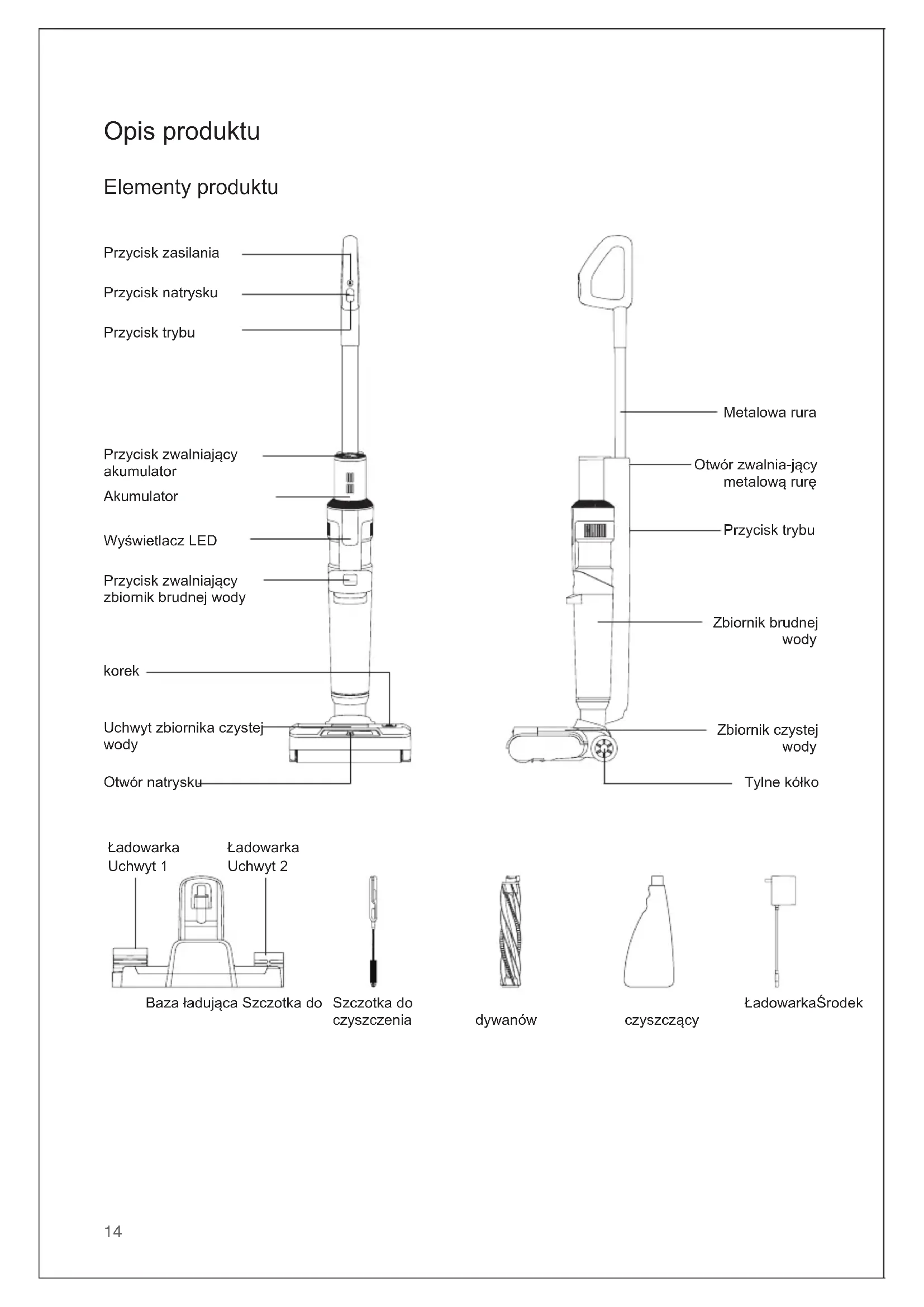 1. Filtr HEPA, wałek szczotki i środek czyszczący
