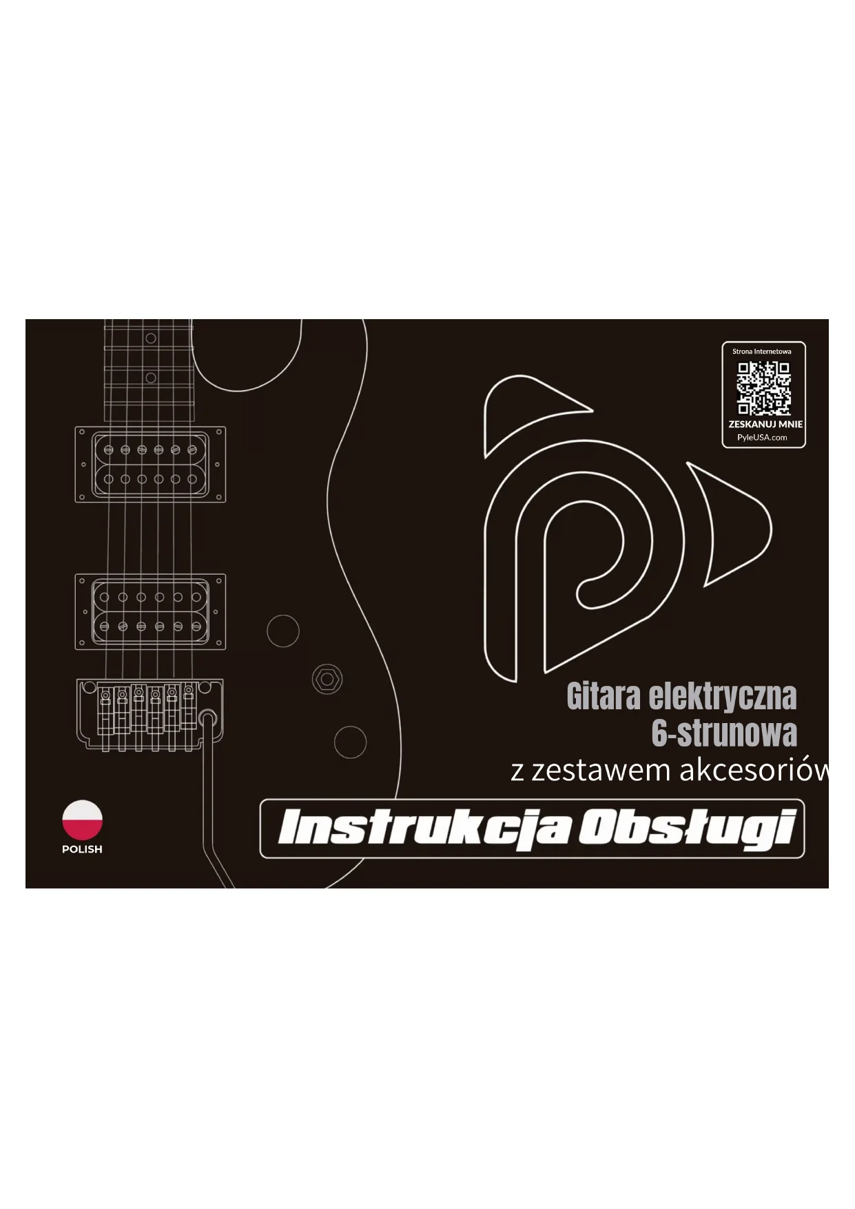 ZESKANUJ MNIE PyleUSA.com Strona Internetowa Gitara elektryczna 6-strunowa z zestawem akcesoriówMostek Obudowa Przycisk przedniego paska Szyjka Przycisk paska Gniazdko wejściowe jack Przyciski kontrolne Przetworniki Progi Główka www.PyleUSA.com