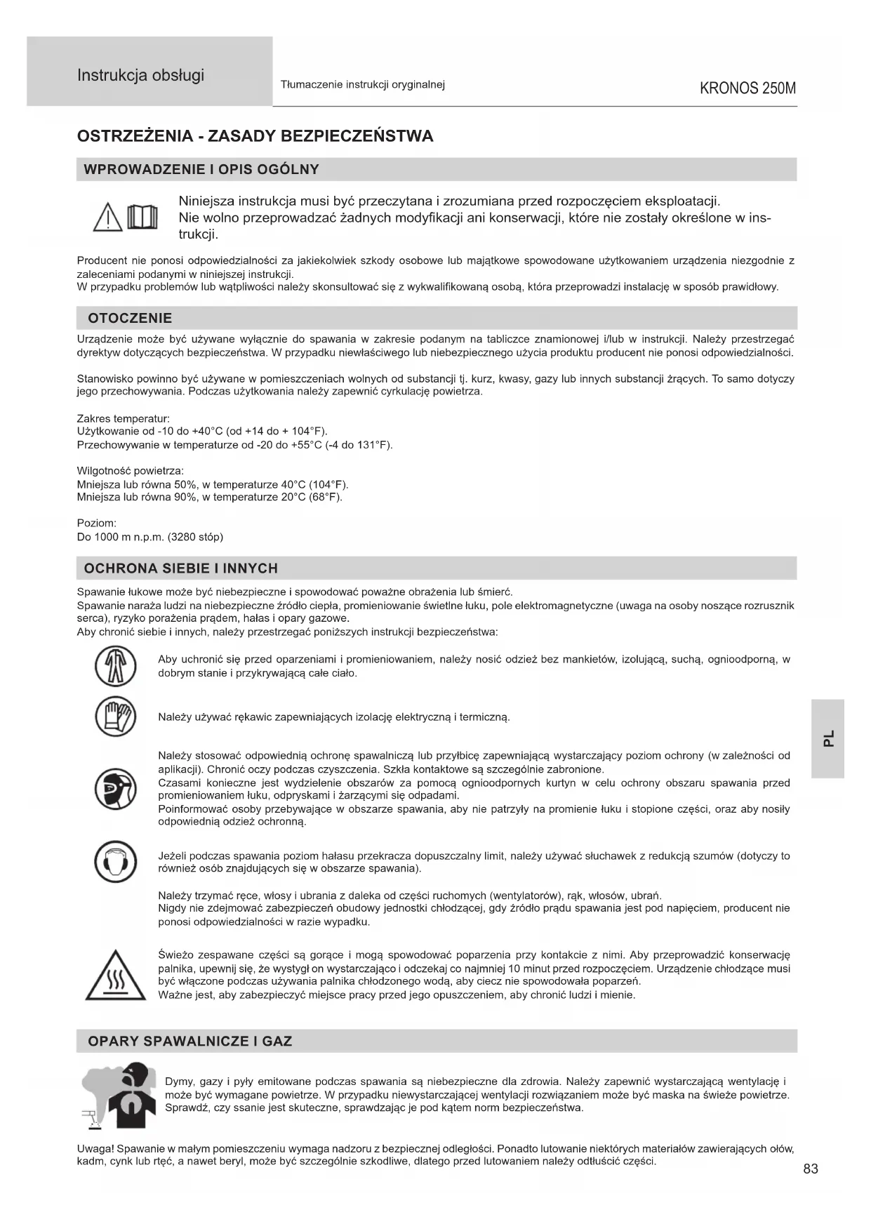 INSTRUKCJA OBSŁUGI Kronos 250M GYS