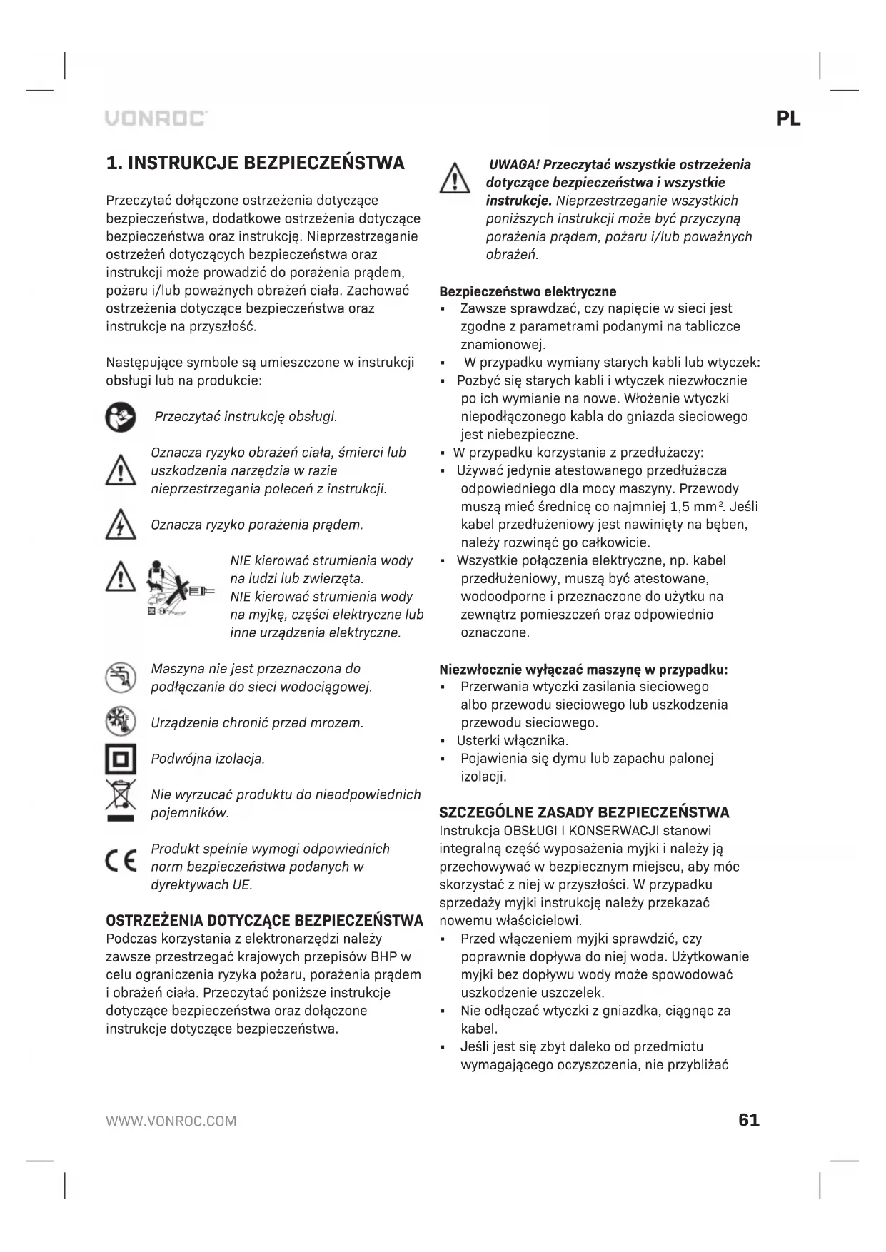 PW503AC - Myjka ciśnieniowa Vonroc - Bezpłatna instrukcja obsługi