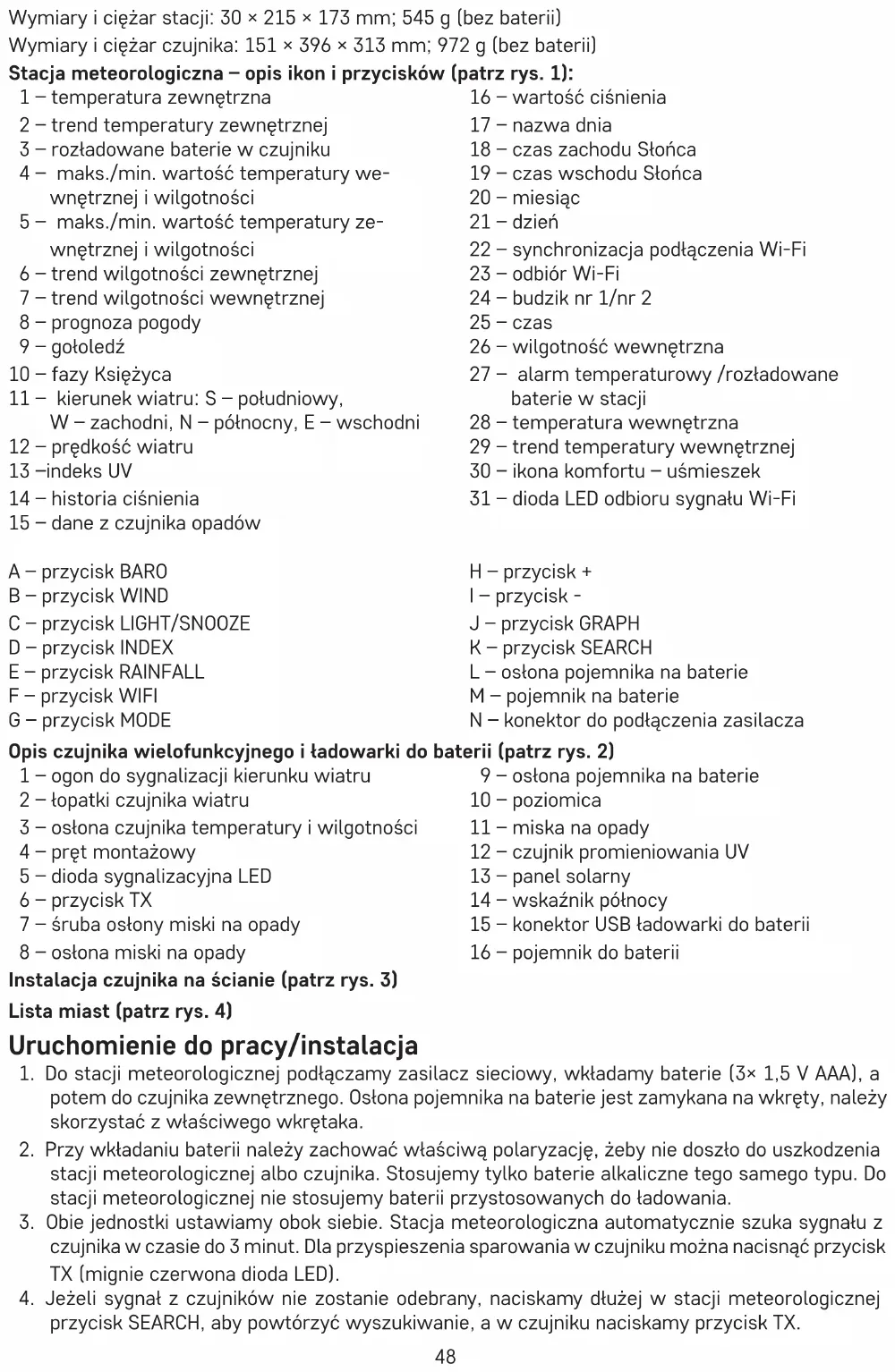 stacji meteorologicznej albo czujnika. Stosujemy tylko baterie alkaliczne tego samego typu. Do stacji meteorologicznej nie stosujemy baterii przystosowanych do ładowania.