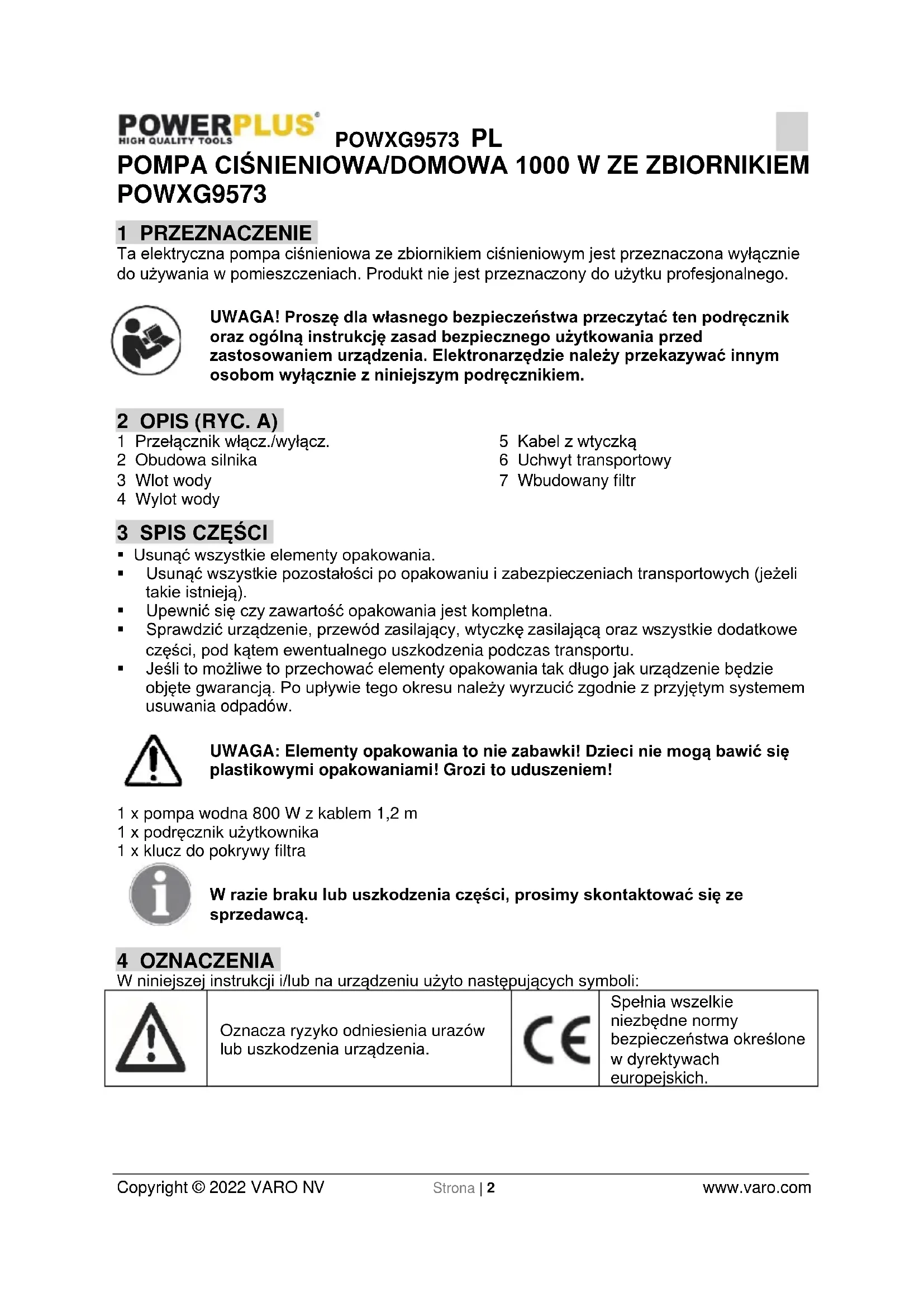 Spełnia wszelkie niezbędne normy bezpieczeństwa określone w dyrektywach europejskich.POWXG9573 PL Copyright © 2022 VARO NV Strona | 3 www.varo.com