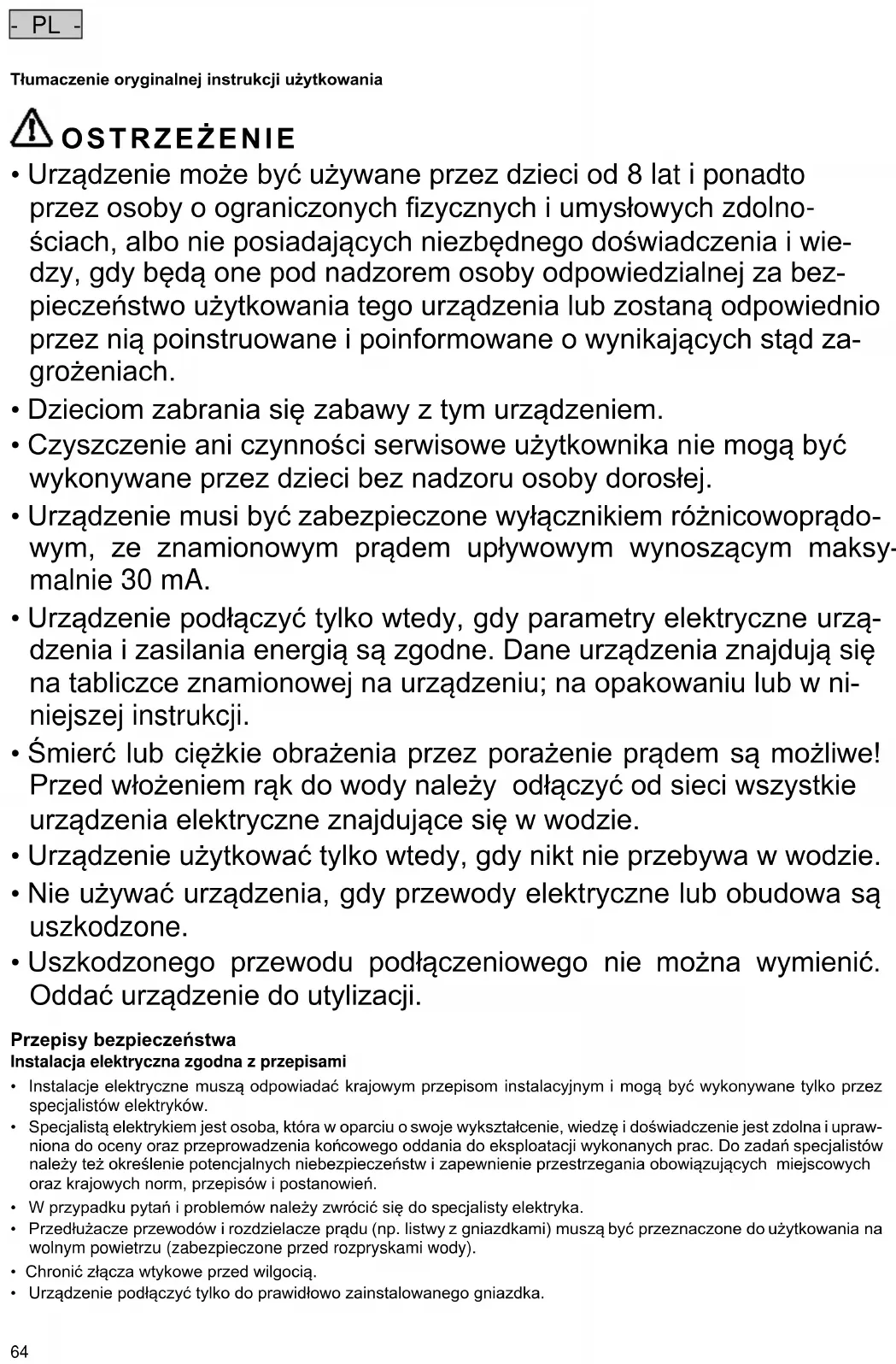 - PL - Tłumaczenie oryginalnej instrukcji użytkowania OSTRZEŻENIE
